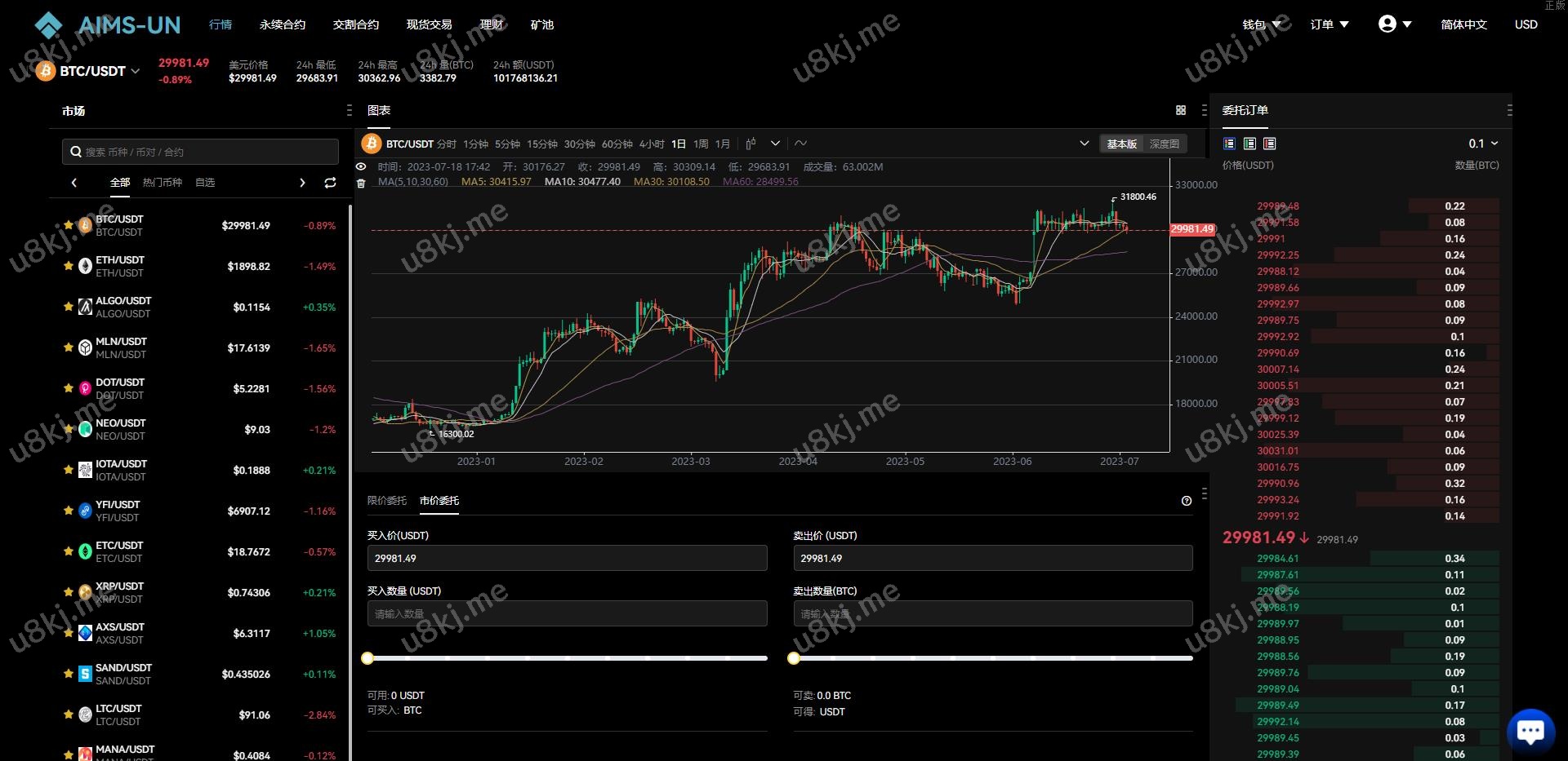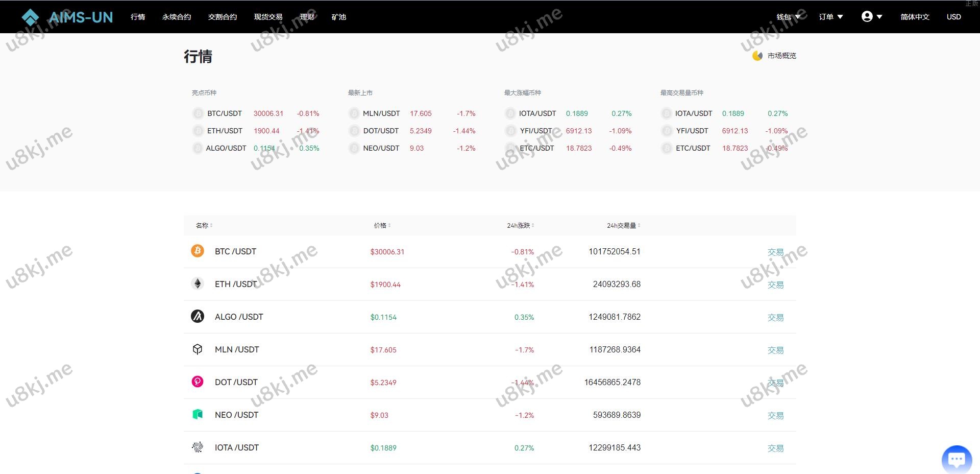 多国语言切换交易所系统 永续交割合约交易 基金理财 锁仓质押