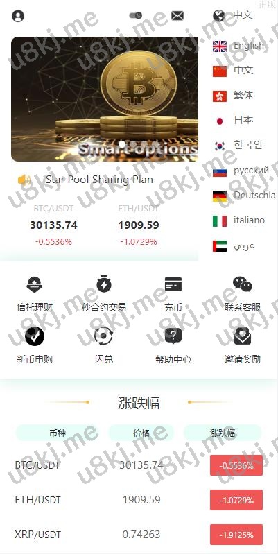 多国语言切换交易所系统 秒合约交易 理财认购矿机闪兑贷款