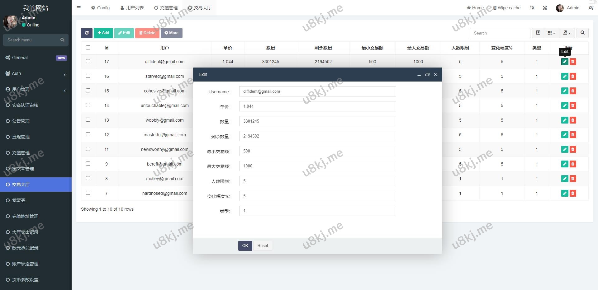 首页的虚拟币数据是对接一个私人的bbank交易所的,需要自行更改