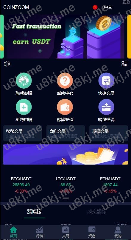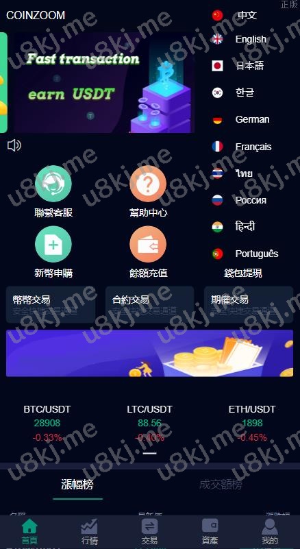 系统支持币币交易、合约交易、期权交易、新币申购等功能