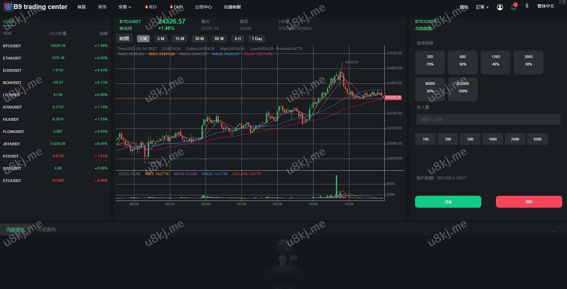 系统多种语言,支持币币秒合约交易、新币申购、质押矿机等功能
