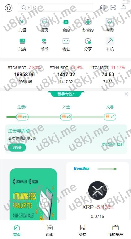 支持币币交易、秒合约交易、矿机质押、邀请推广等一些大众功能