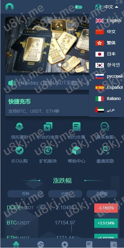 修复版多国语言切换交易所系统 合约期权交易所 理财认购矿机