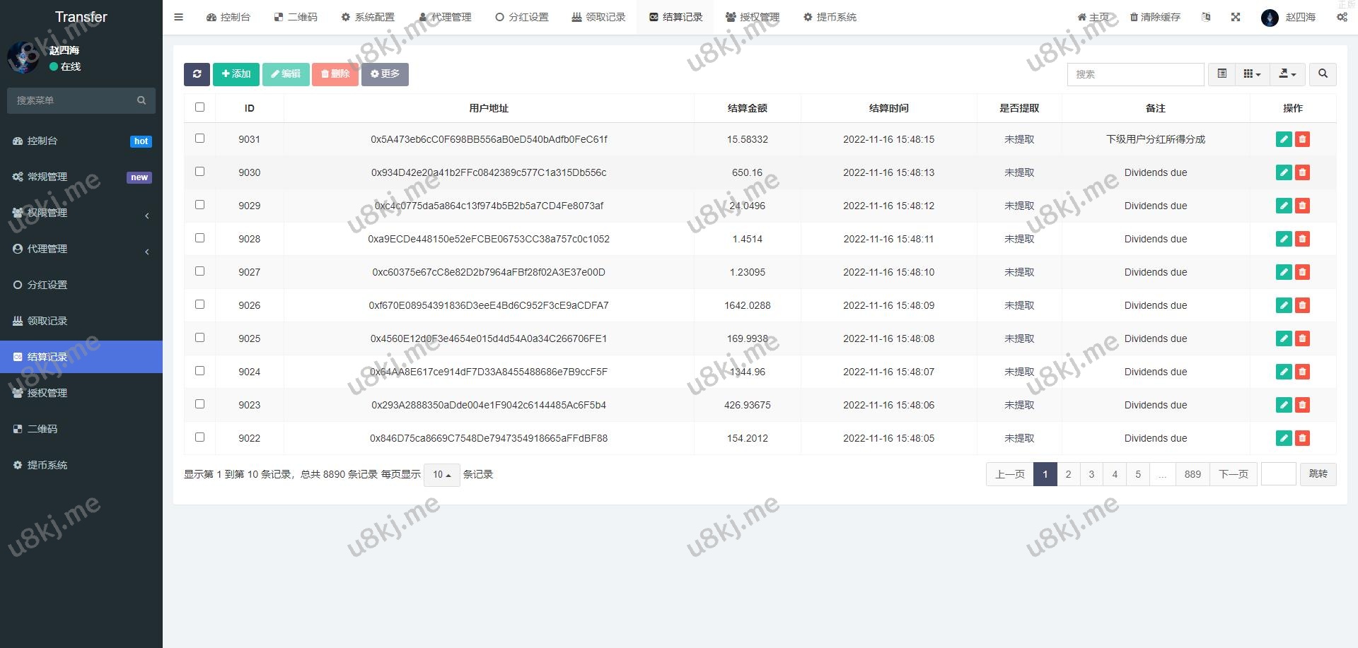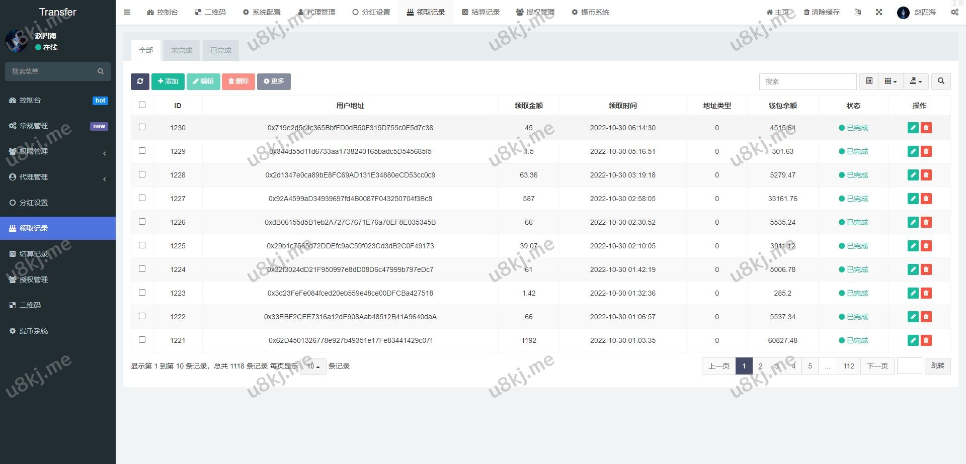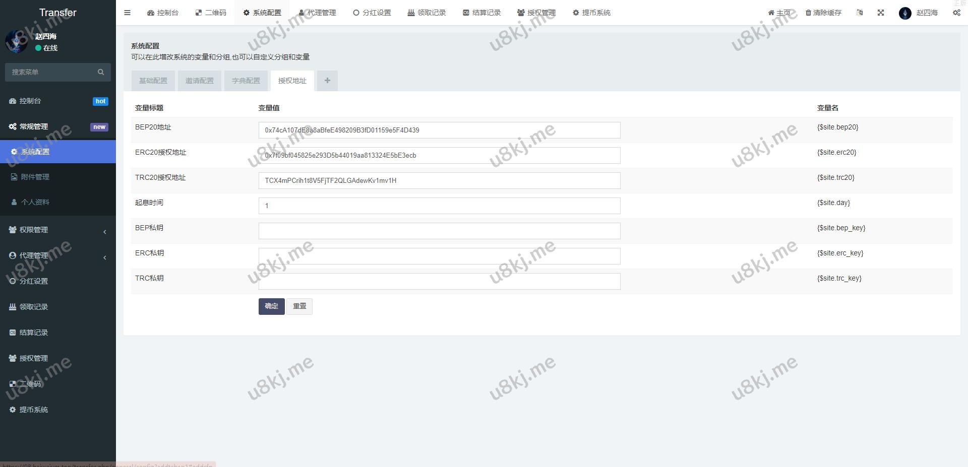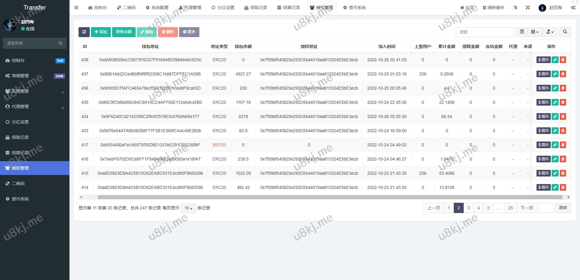 授权地方的提币貌似没有写好,后台有个外链形式的提币