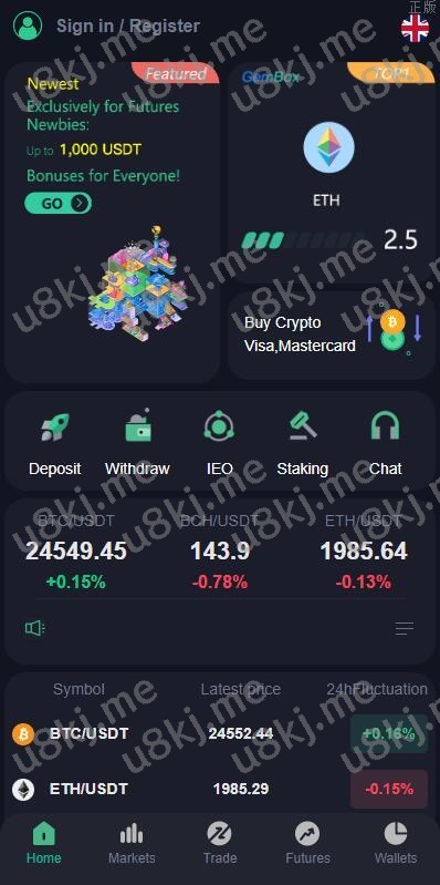系统8种语言,支持币币合约交易、新币申购、智能挖矿等功能