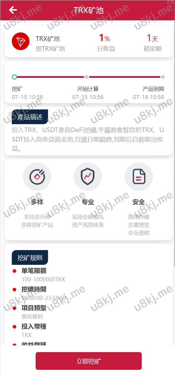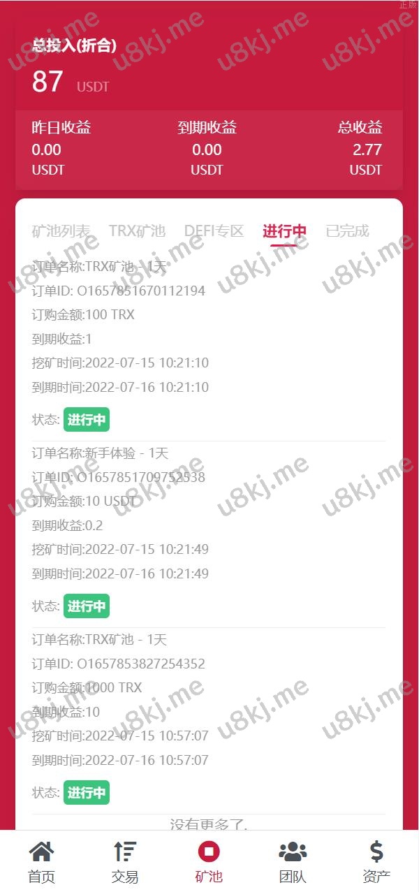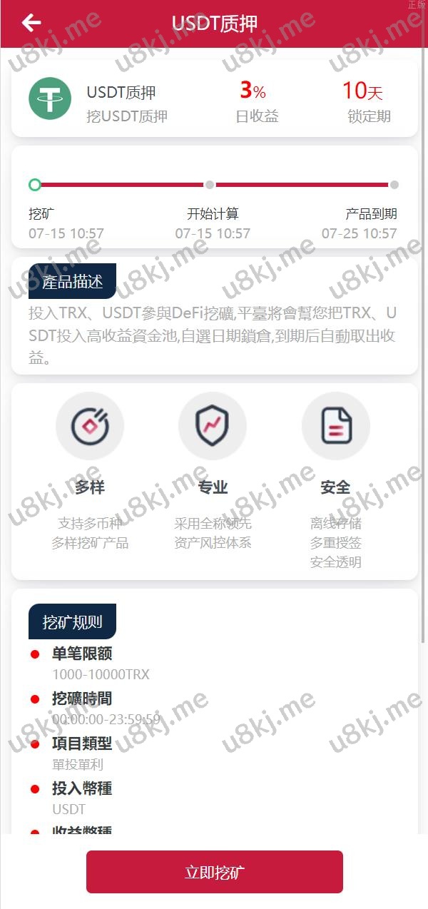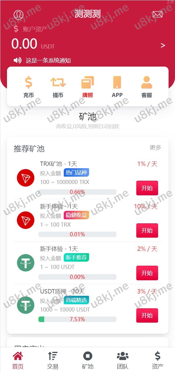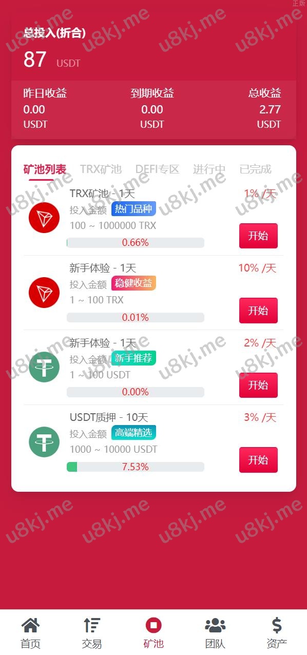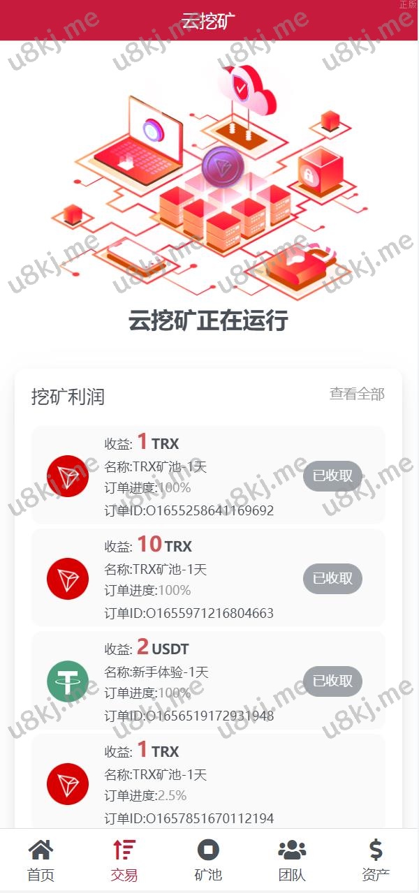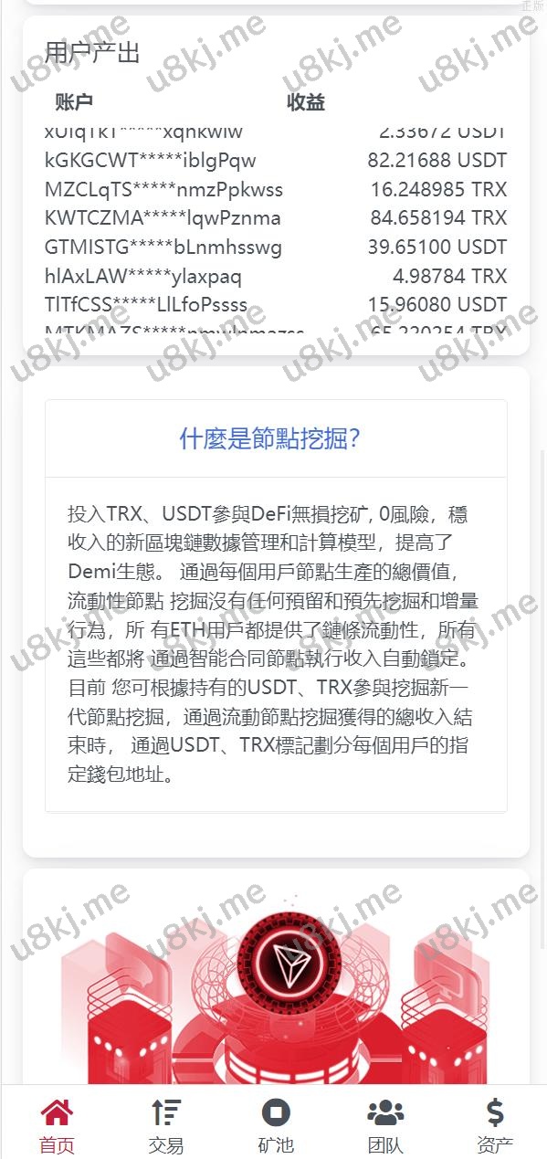 修复版USD₮ trx区块链理财系统 质押挖矿 云算力矿机系统