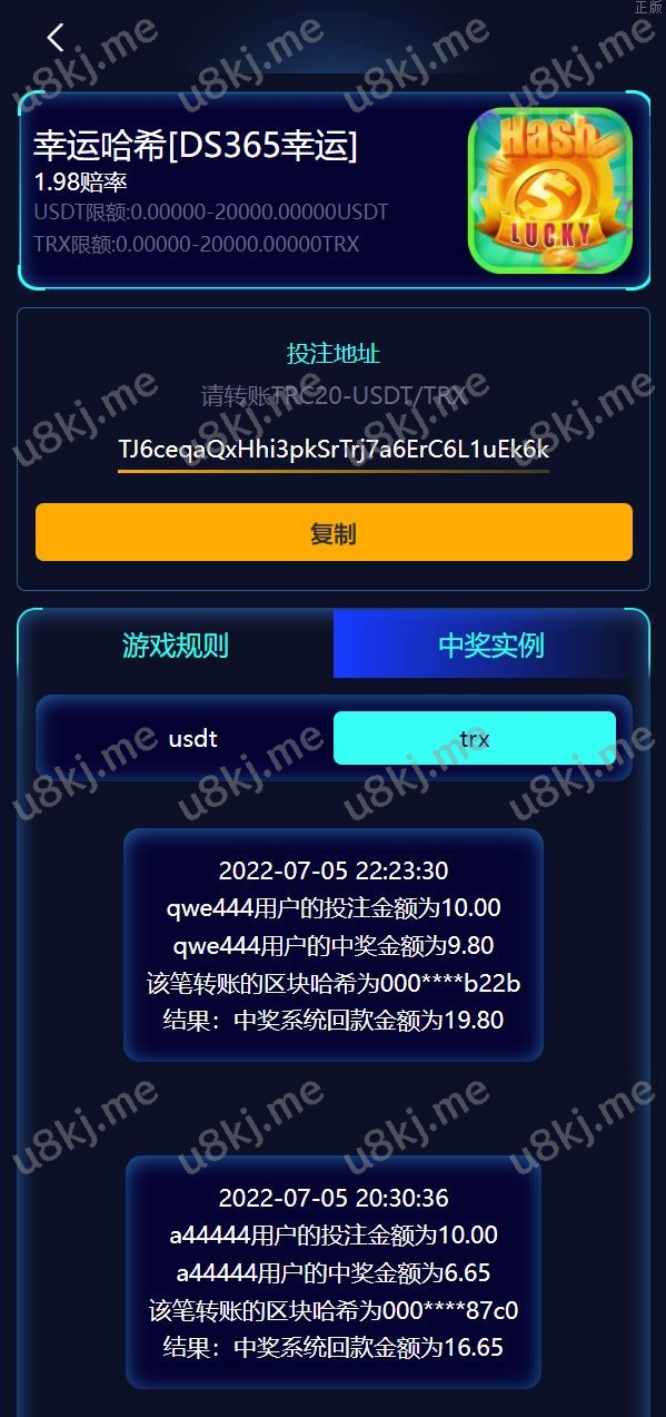 新增二开USD₮、TRX双玩法,新增免注册投注等功能,返款时效为10-40s之间