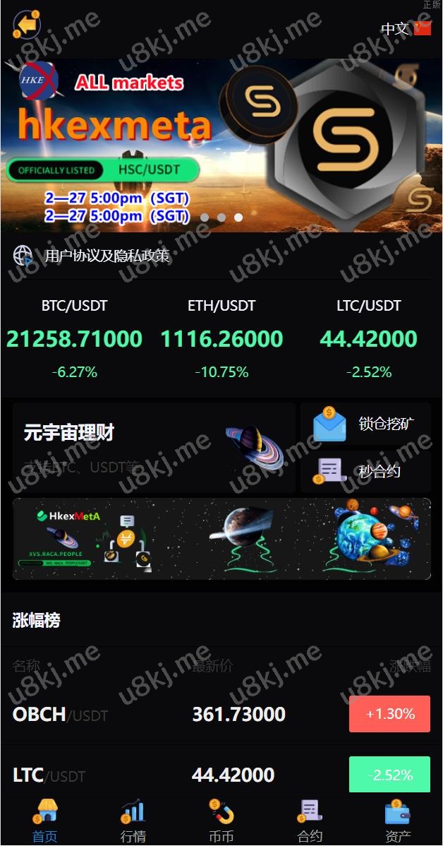 此套是别人二次开发二开UI的多国语言切换交易所,新增元宇宙理财功能