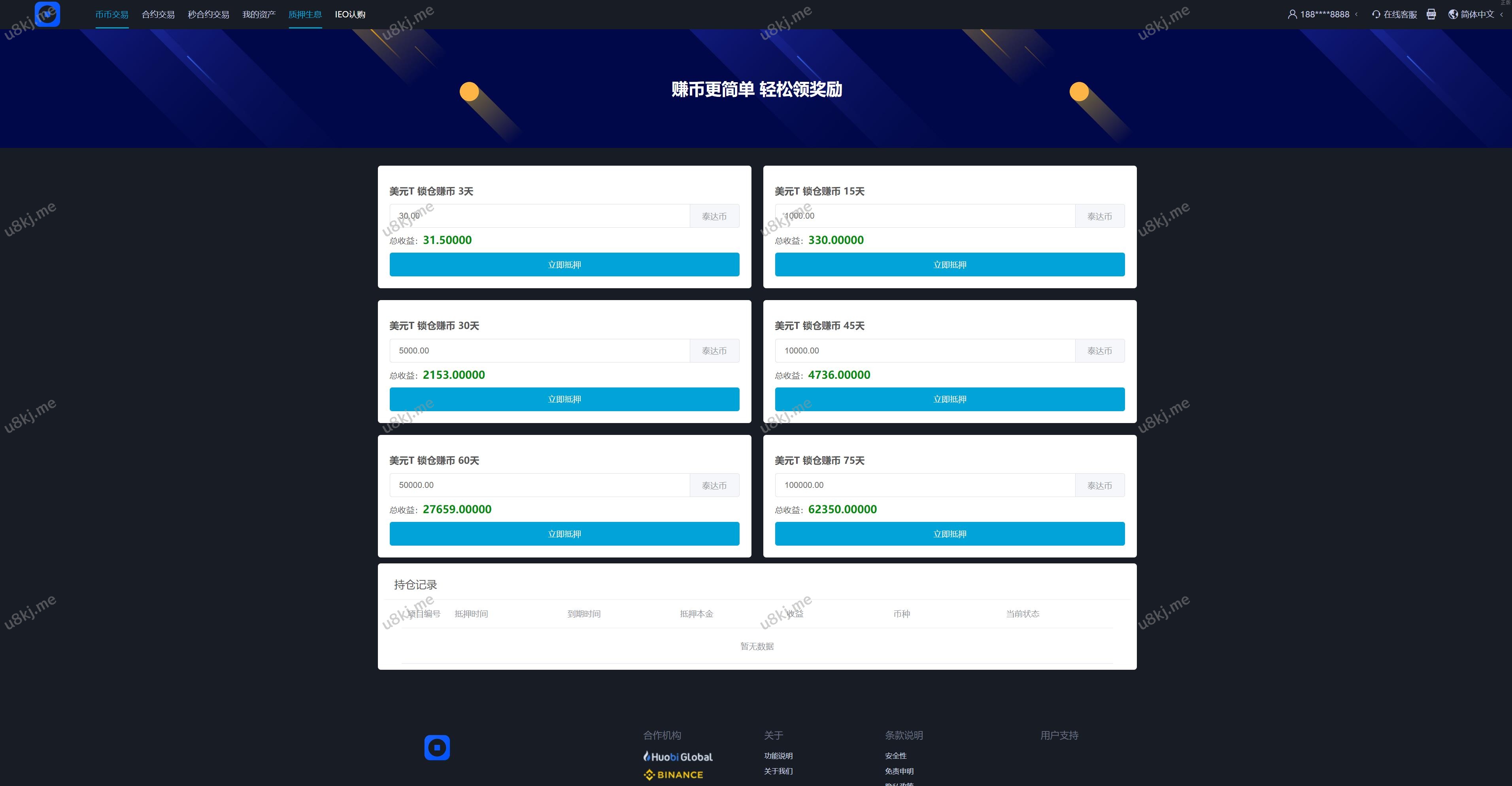 多国语言切换交易所 币币交易 秒合约交易 质押生息
