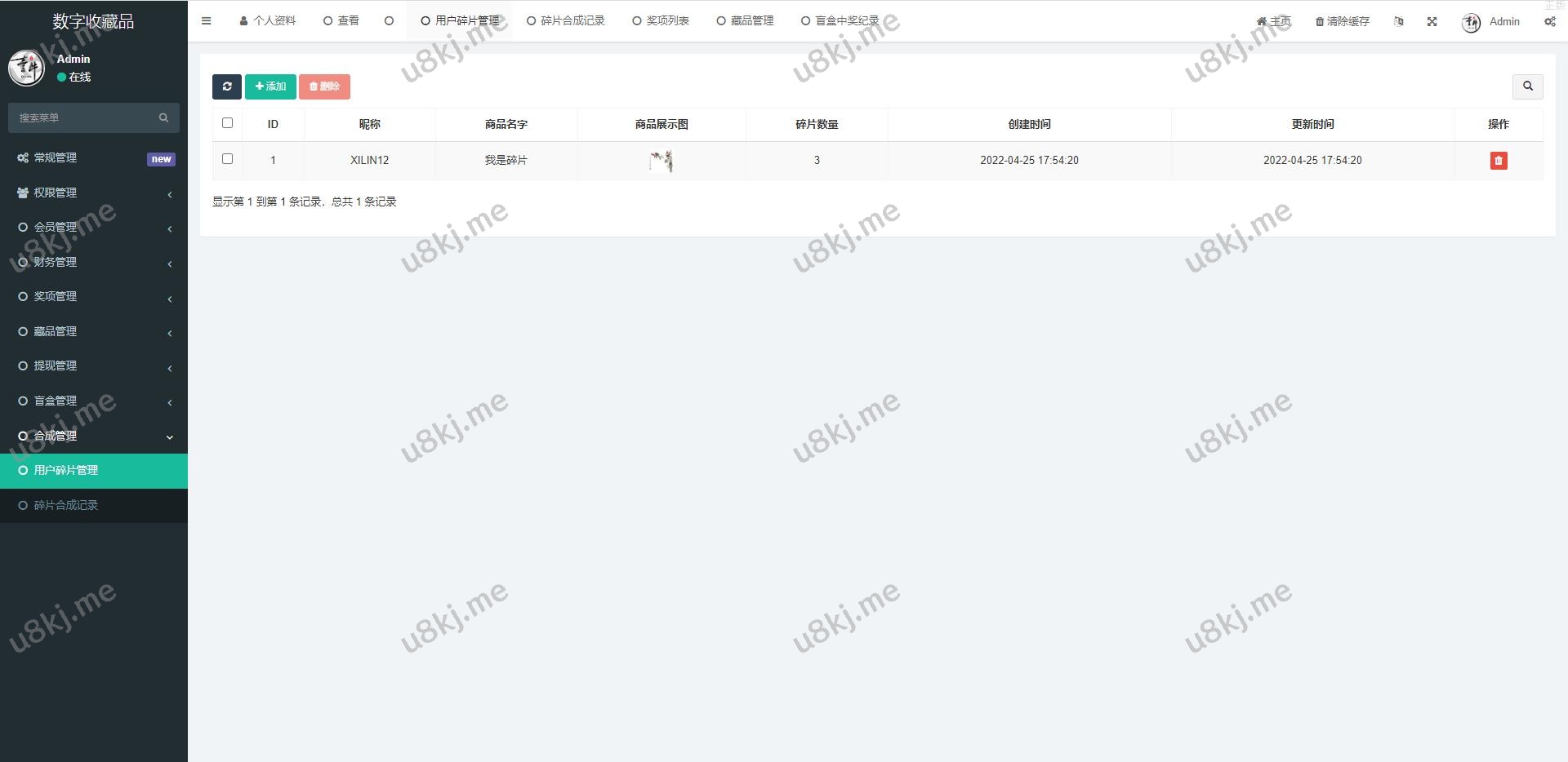 4.合成:购买碎片后可以合成对应的艺术品,后台灵活设置