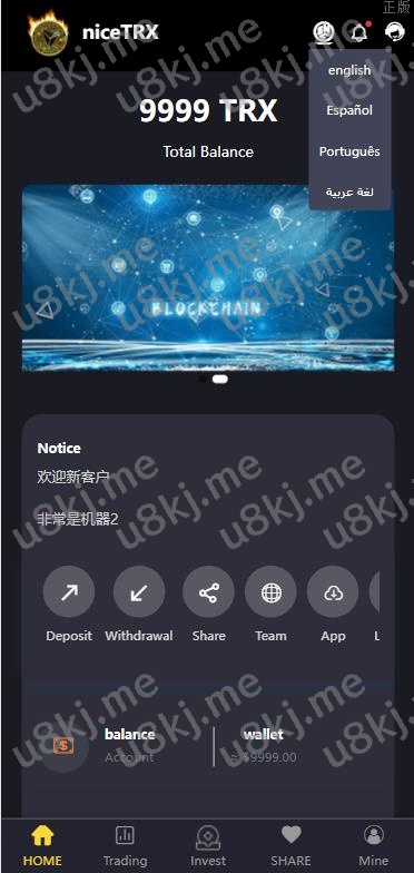 Trx投资源码 区块链源码 投资理财 多国语言切换