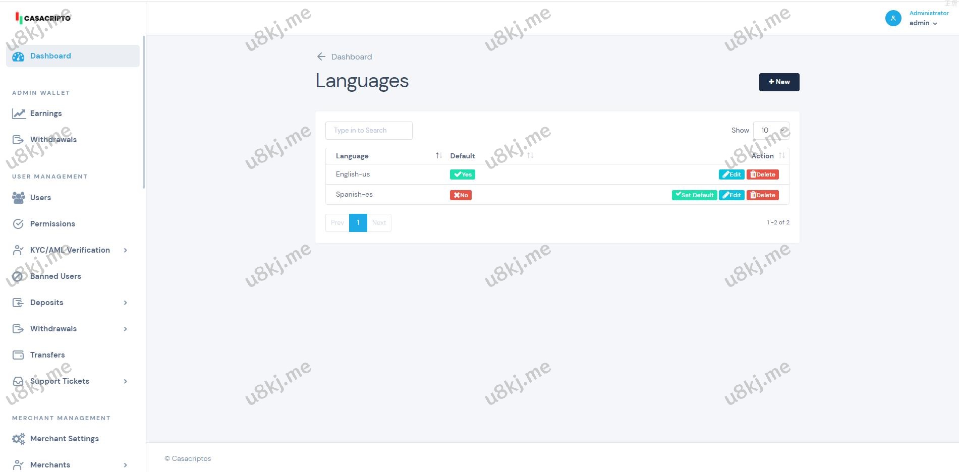 系统为多国语言切换,后台支持添加其他语言