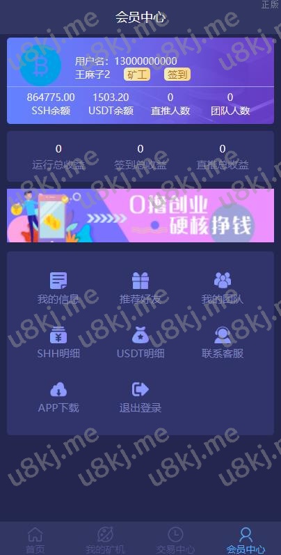 一款USD₮的矿机系统,附带交易大厅,具体功能自行研究