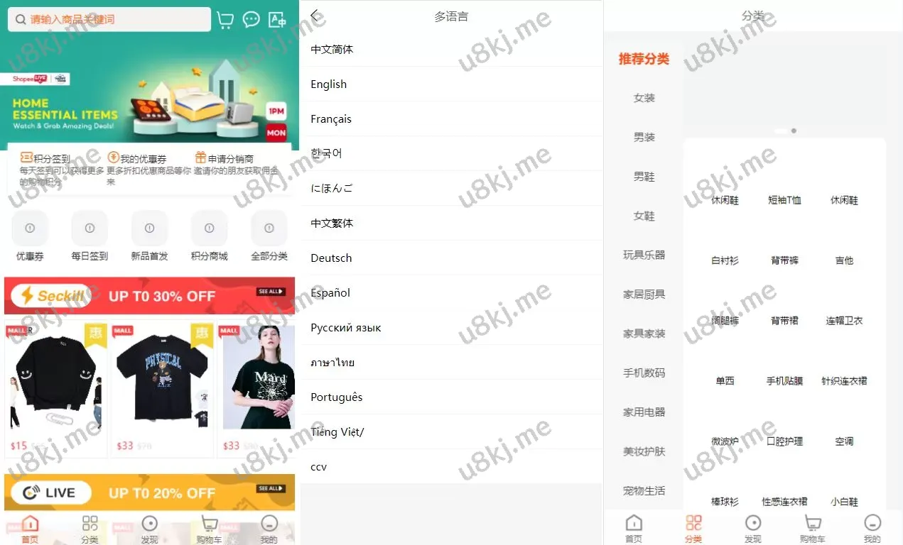 源码独立开发,源码流畅;前后端全开源、无加密;商城集短视频、直播、社交、分销、积分、多国语言切换、国际支付、国际物流等多功能一体;