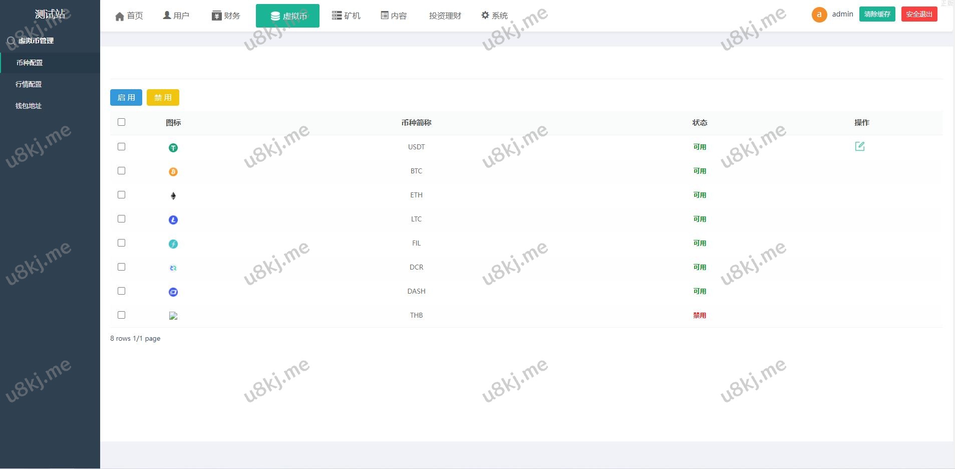 财务:财务明细,转出审核,充值审核,收款地址,账户明细,收益领取明细