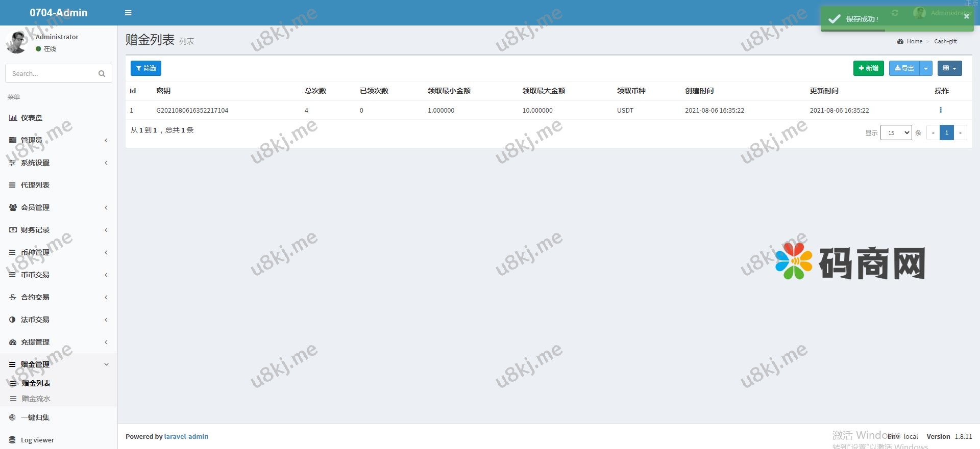 PHP使用框架:Laravel + Laravel-Admin使用环境:Php7.4 Mysql5.7 Redis5.0及以上 Nginx1.8