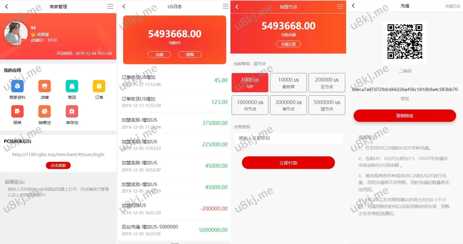 USD₮支付的商城源码,购物获得返利,支持加盟代理推广,源码附带商家店铺电脑端