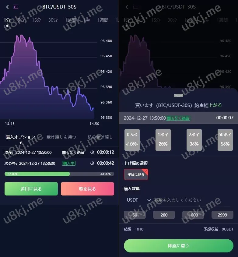 - 提供 期权交易,用户可以根据秒数选择 买涨或买跌,实现灵活交易策略。