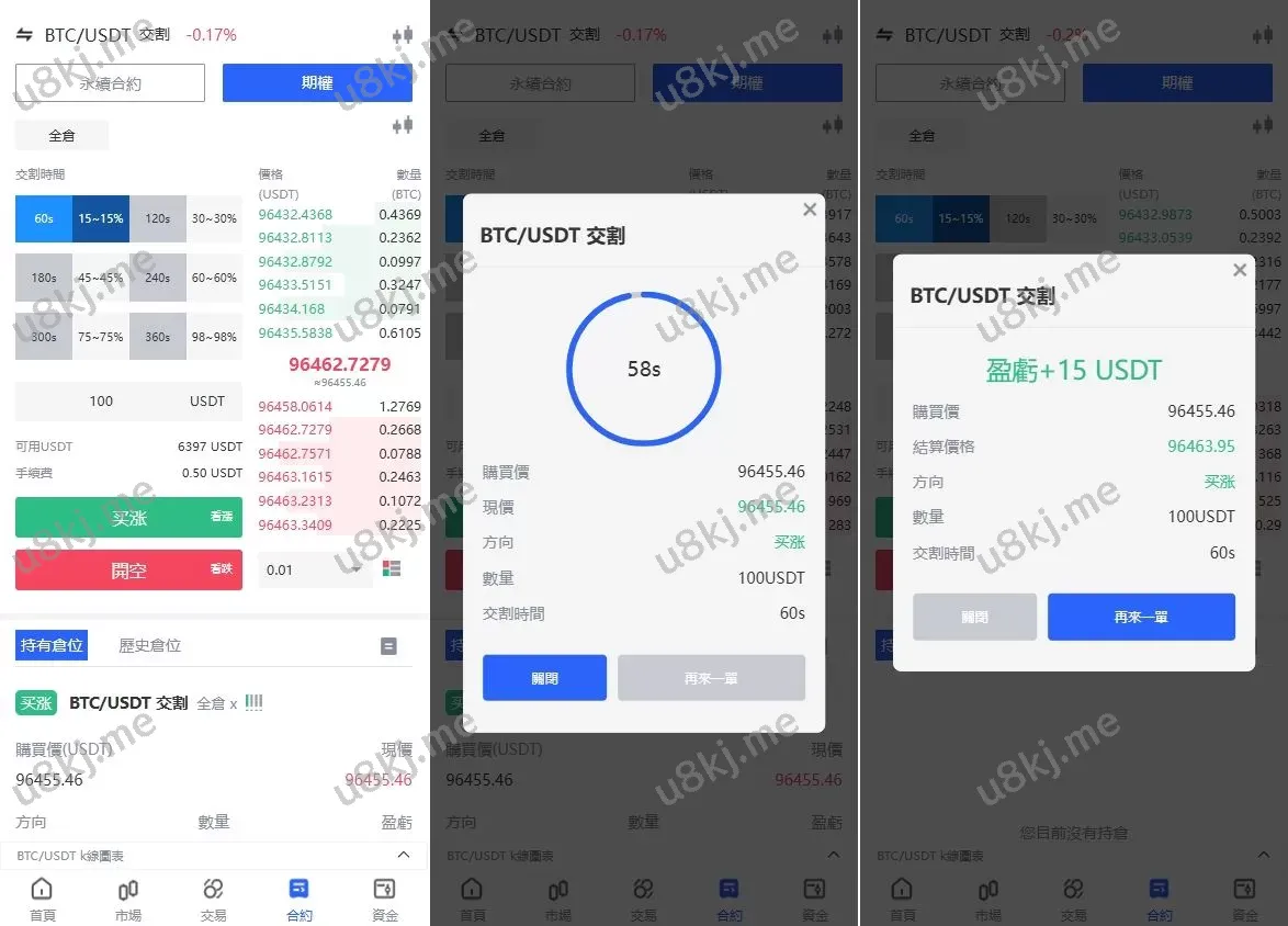 - 期权交易:提供 期权交易(秒合约),支持盈亏控制与策略设置,适合专业投资者。