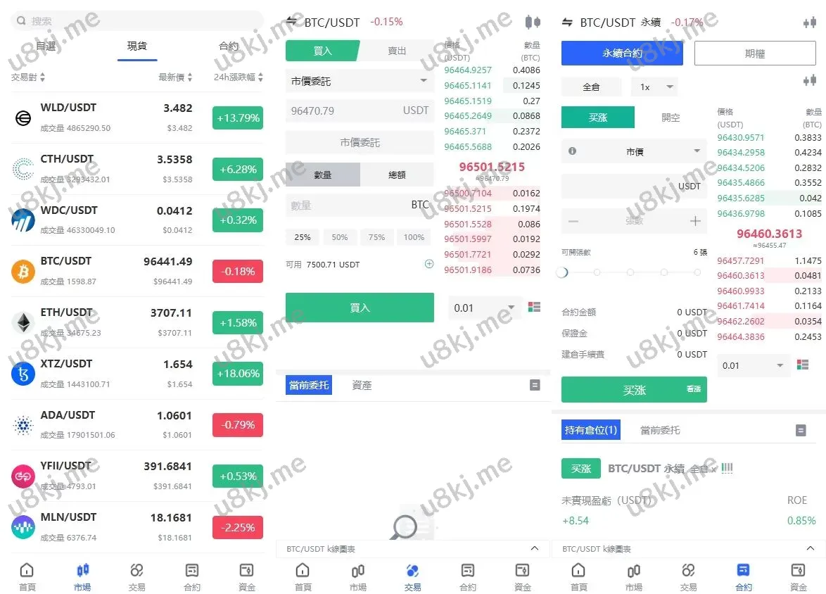 - 币币交易:支持多种主流虚拟币的现货交易,方便用户灵活交易。