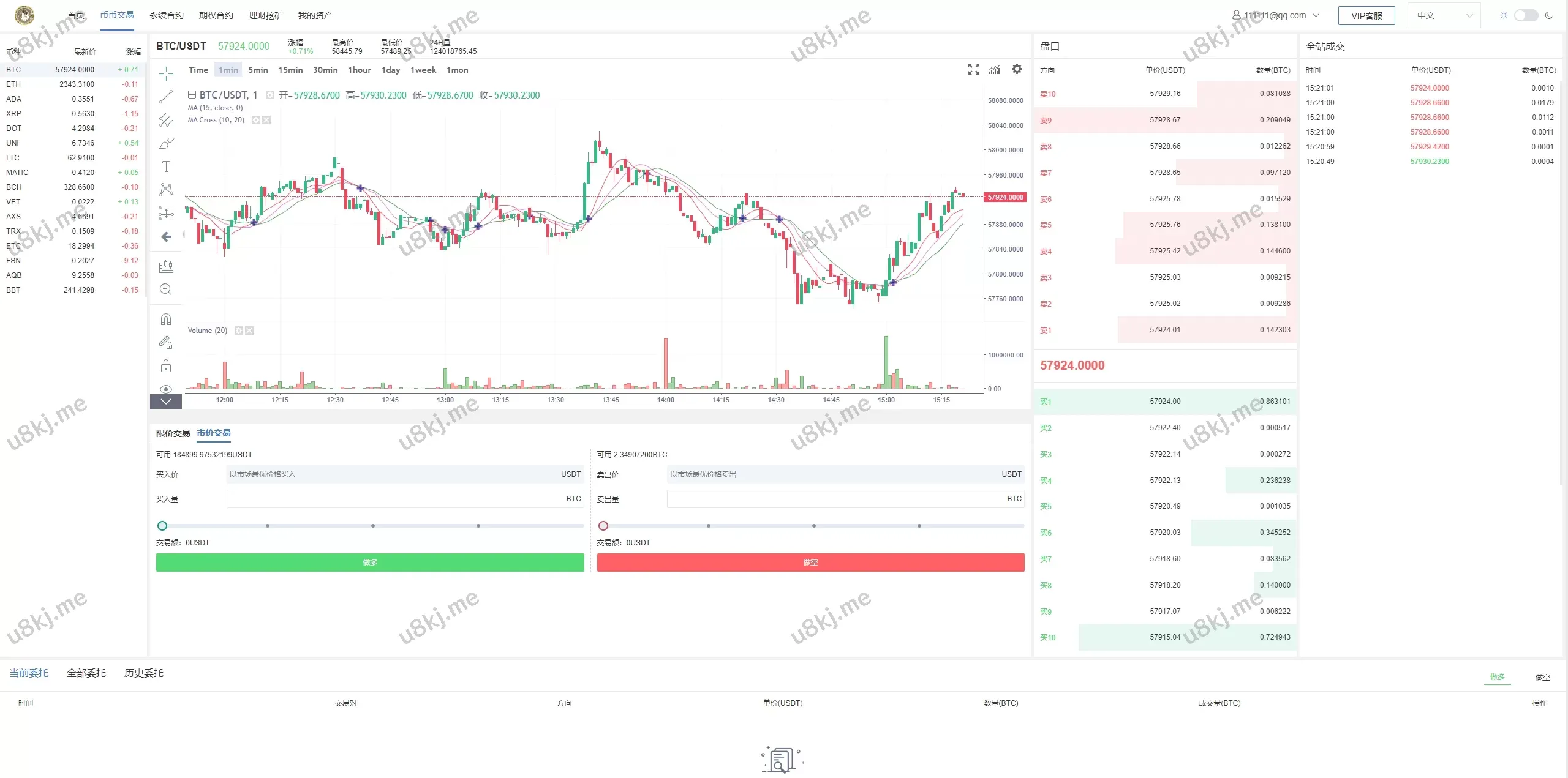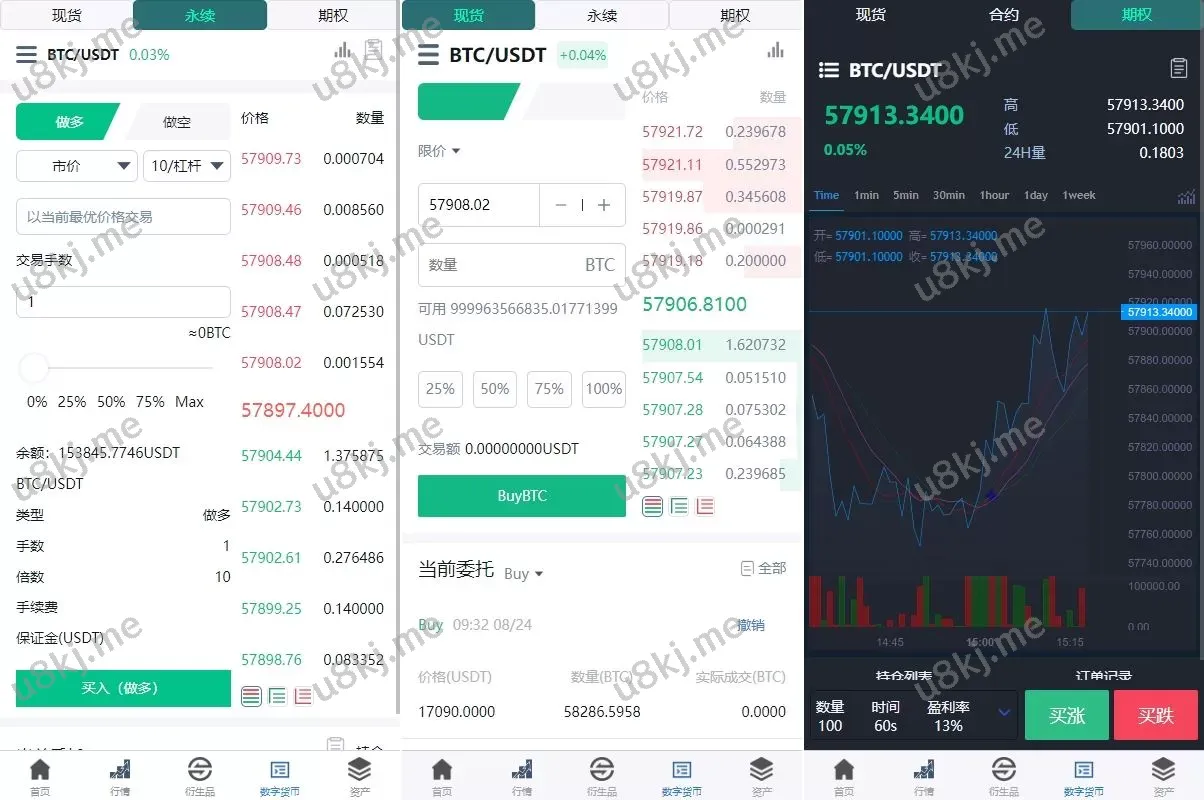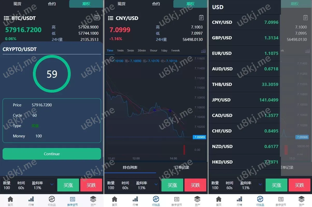 🔹 全面支持多种产品:源码支持 虚拟币 交易和 外汇 交易(外汇数据通过免费接口提供),同时也包括 期权 和 合约交易,提供多样化的交易选择。