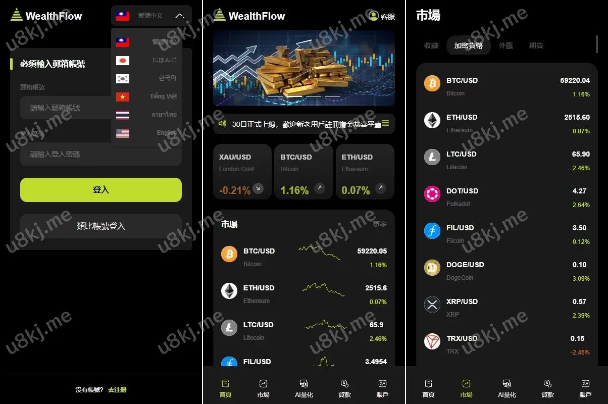 多国语言切换综合交易所源码/外汇/期货虚拟币交易/AI量化/贷款源码