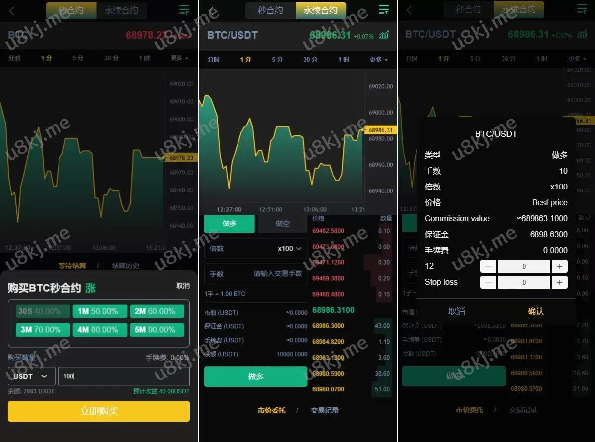 🔹 秒合约与永续合约:提供 秒合约交易 和 永续合约交易 功能,适应快速变动的市场,满足用户的交易需求。