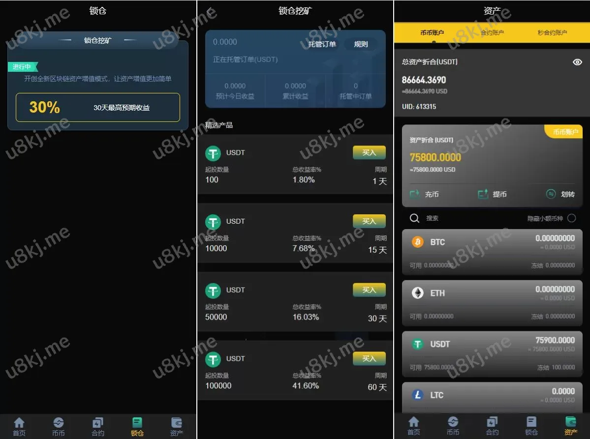 🔹 锁仓挖矿功能:源码支持 锁仓挖矿,用户可以参与锁仓获取收益,增加平台的投资理财功能。