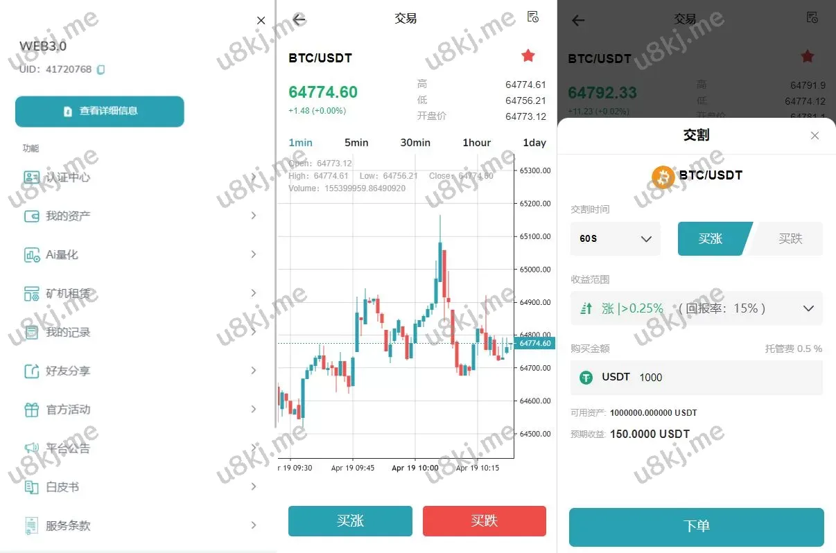 🔹 丰富交易功能:包括 秒合约交易、借贷、矿机、AI量化 等多种交易模式和投资功能,满足不同用户的需求。