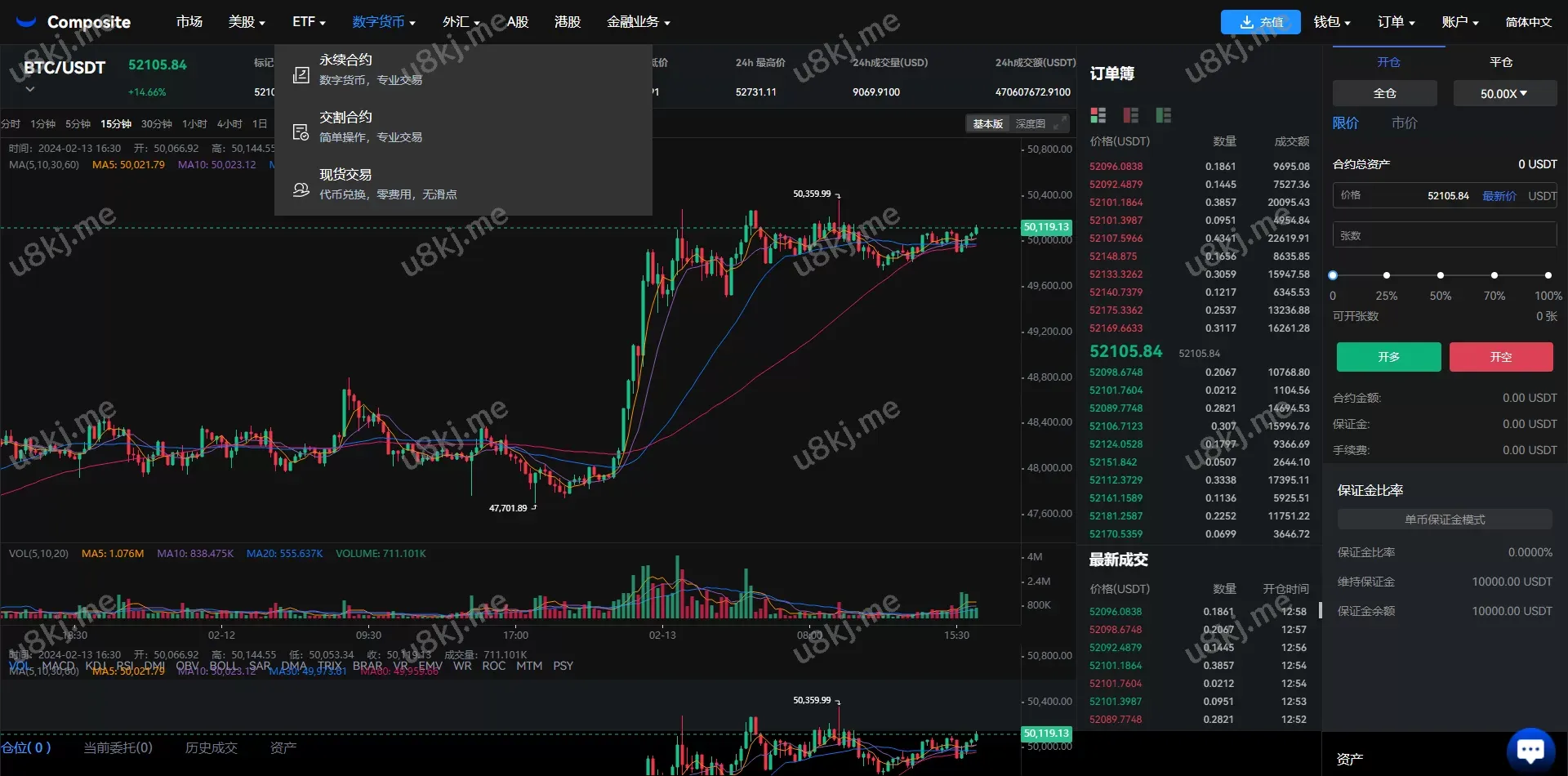 - K线图支持:虚拟币的 K线图 功能正常,其他交易品种的K线需要自行修复。