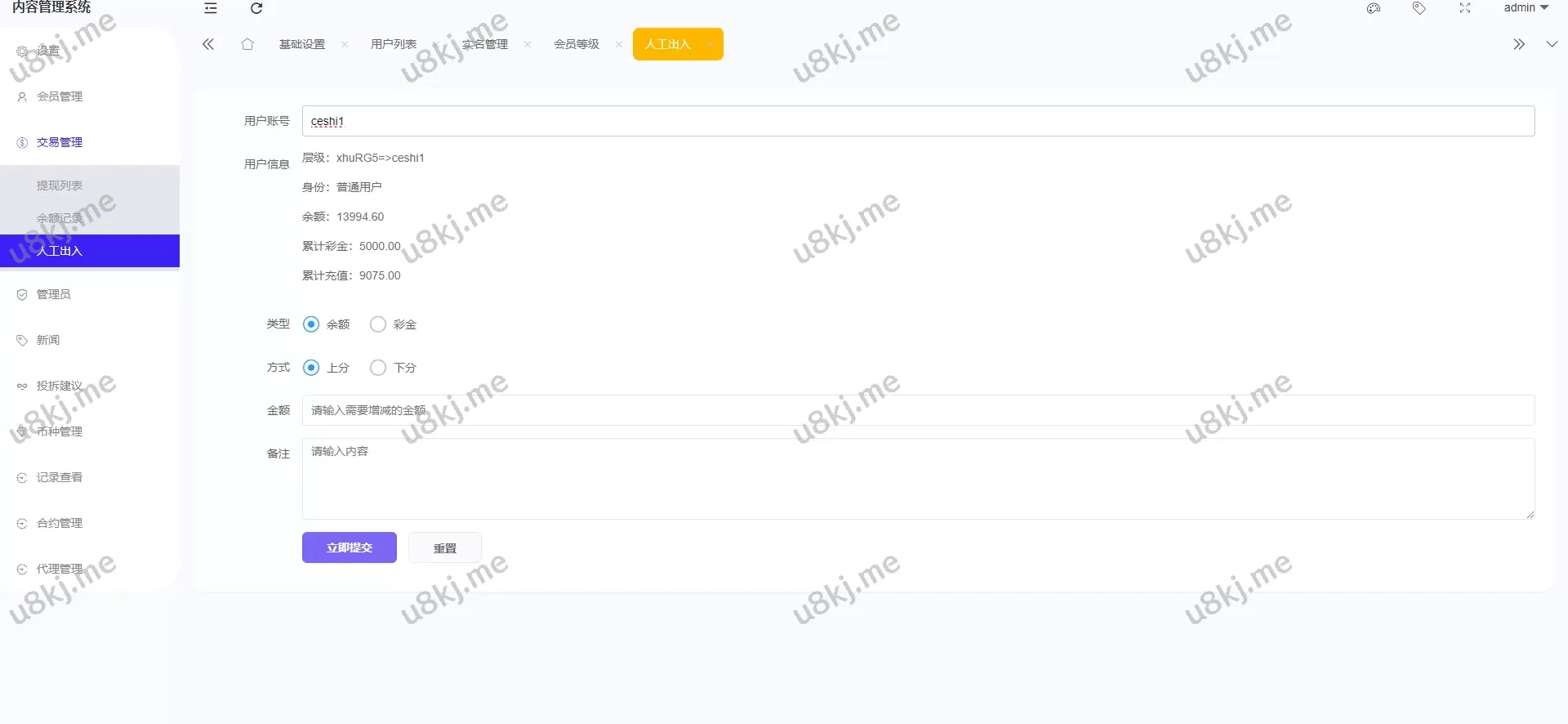 🔹 手动上下分功能:后台新增 手动上分、下分功能,方便管理员管理用户资金。