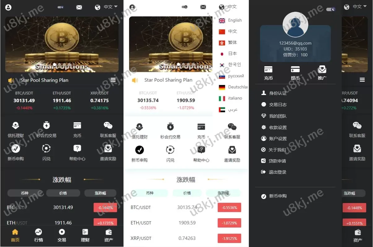 多国语言切换交易所源码/秒合约交易/理财认购矿机闪兑贷款源码