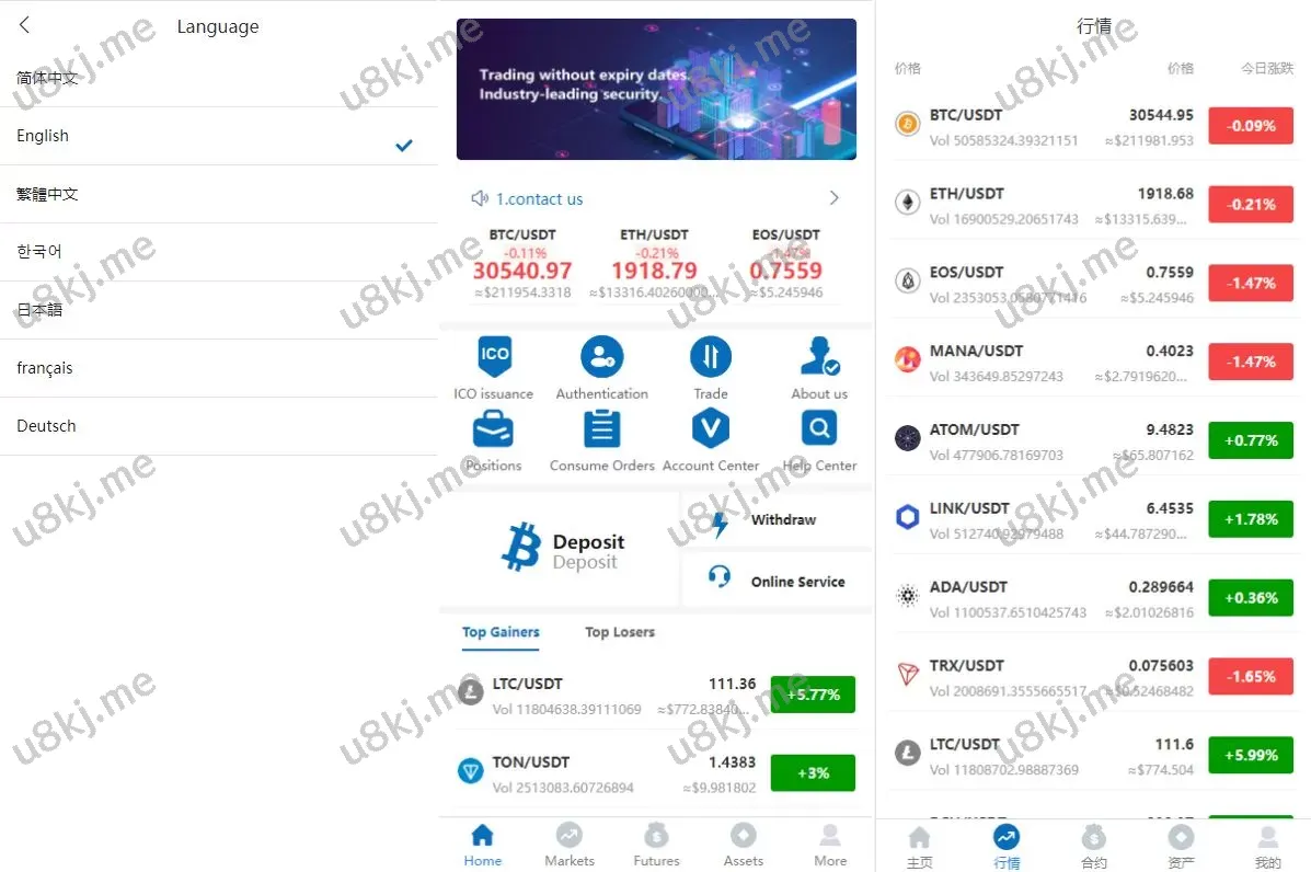多国语言切换合约交易所/区块链虚拟币交易源码/前端uinapp源码