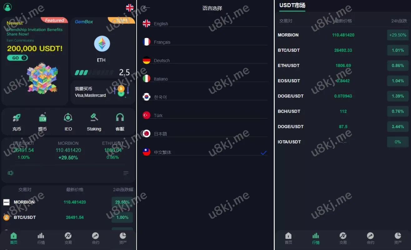 🔹 多国语言切换支持:源码支持 8种语言,涵盖了多种国际语言,适合面向全球用户的交易所平台。
