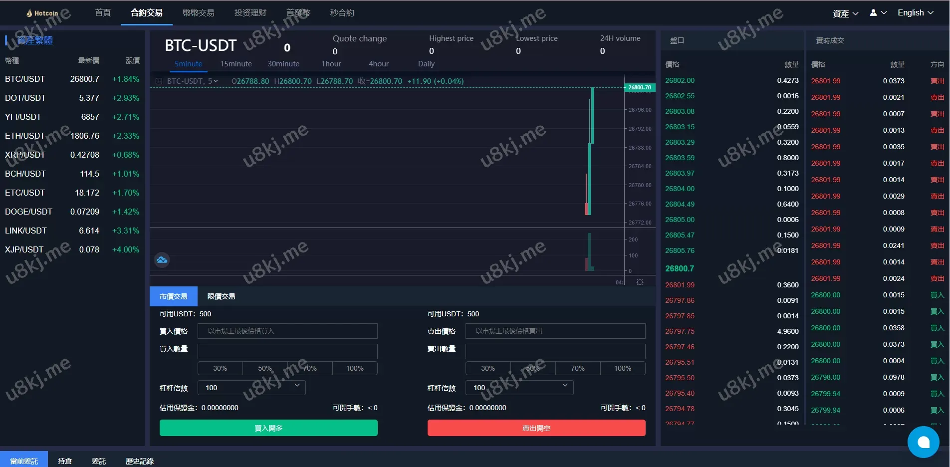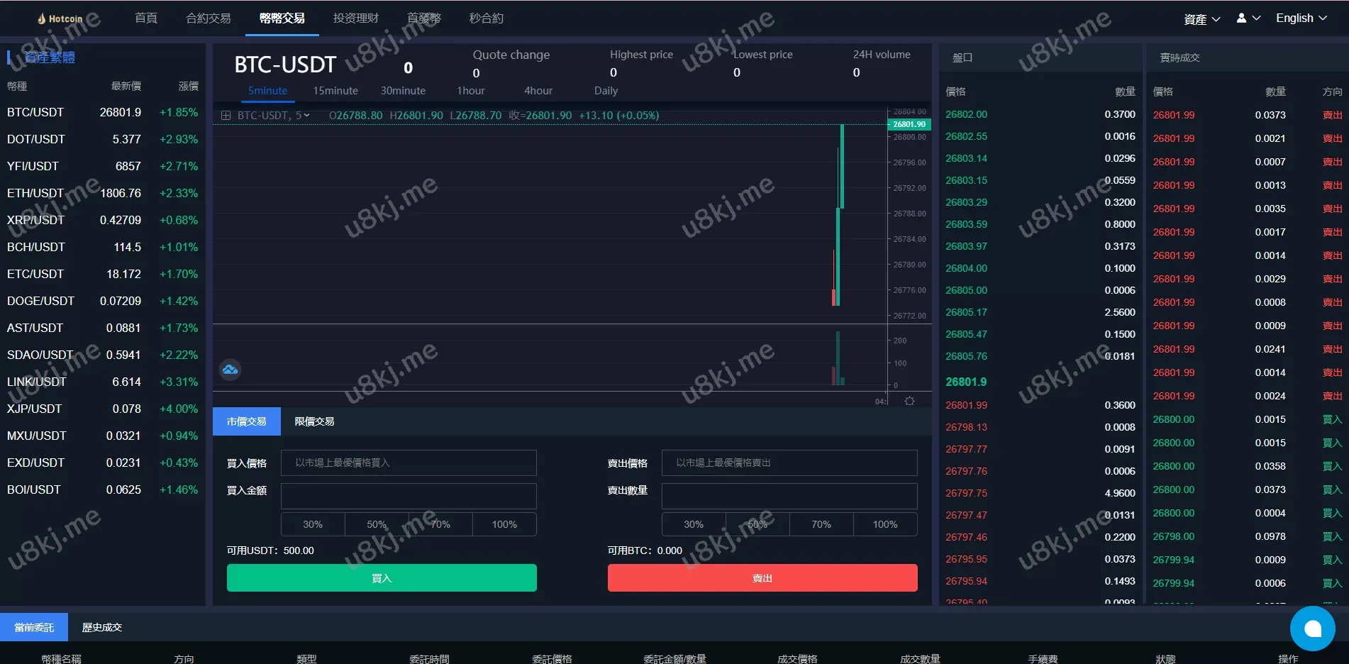 🔹 K线功能:K线最短时间为 5分钟,适合中长线交易,满足一般交易所对 K线图的基本需求。