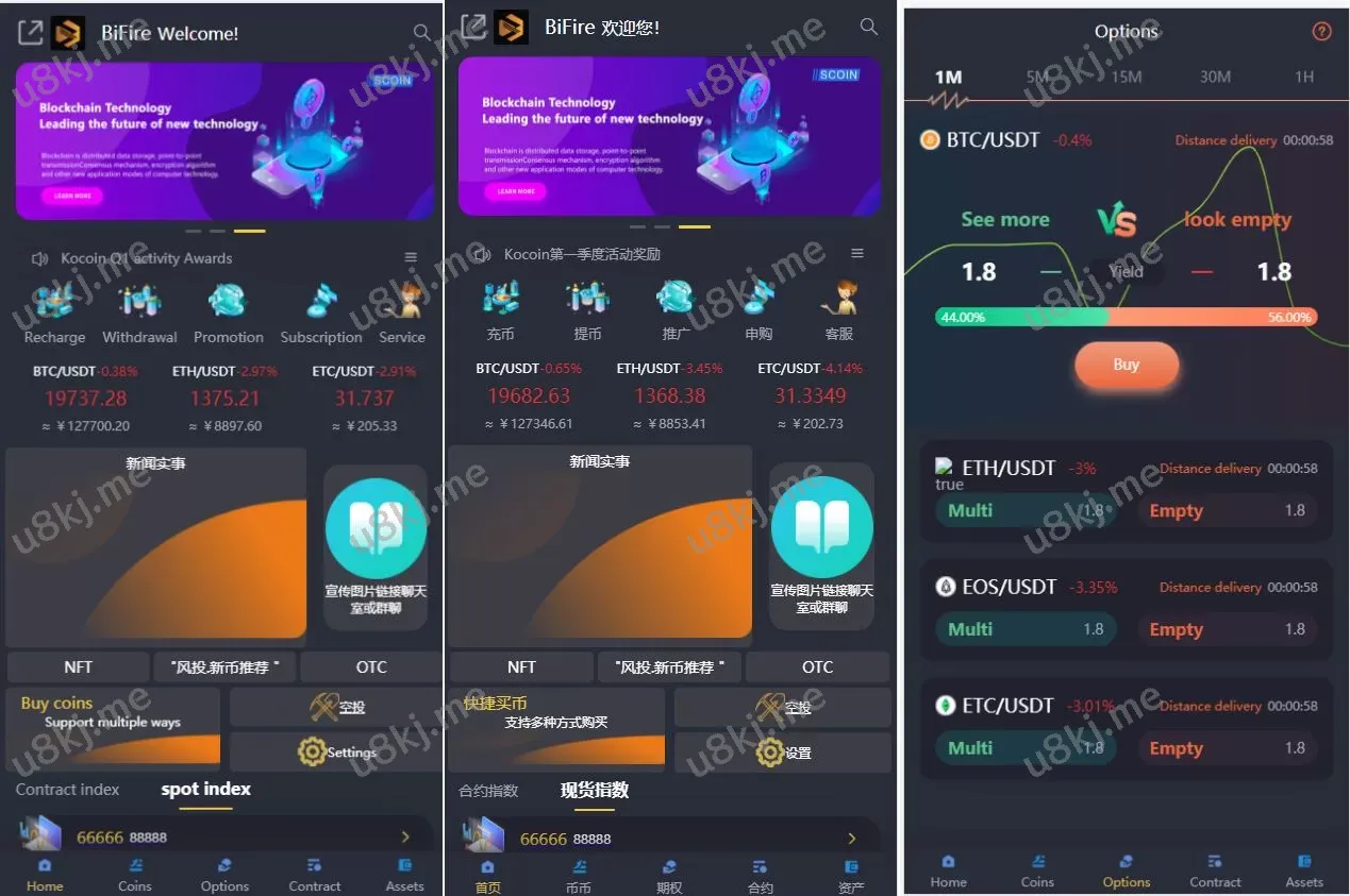 多国语言切换区块链精品所源码/期权交易/申购/币币秒合约交易所源码