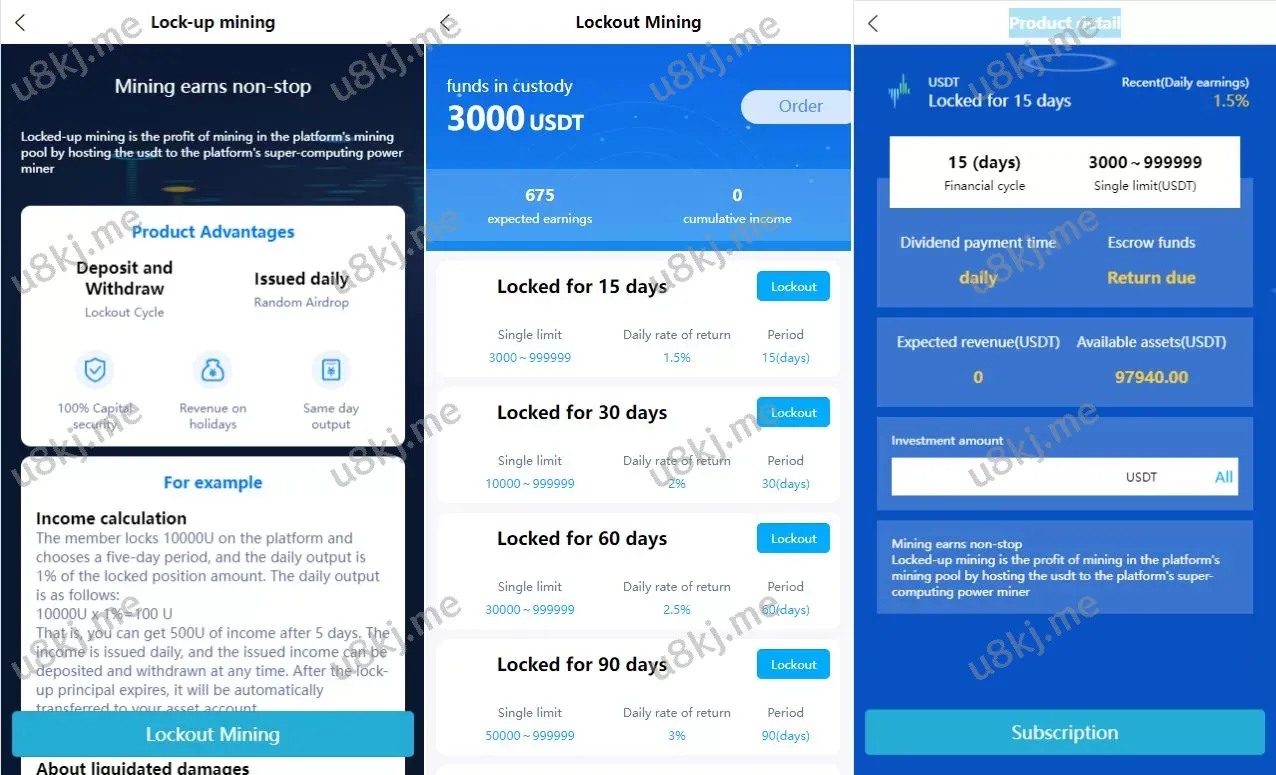 🔹 锁仓挖矿:引入了 锁仓挖矿 功能,用户通过锁仓虚拟币进行挖矿,享受长期稳定收益,增加平台的投资吸引力。