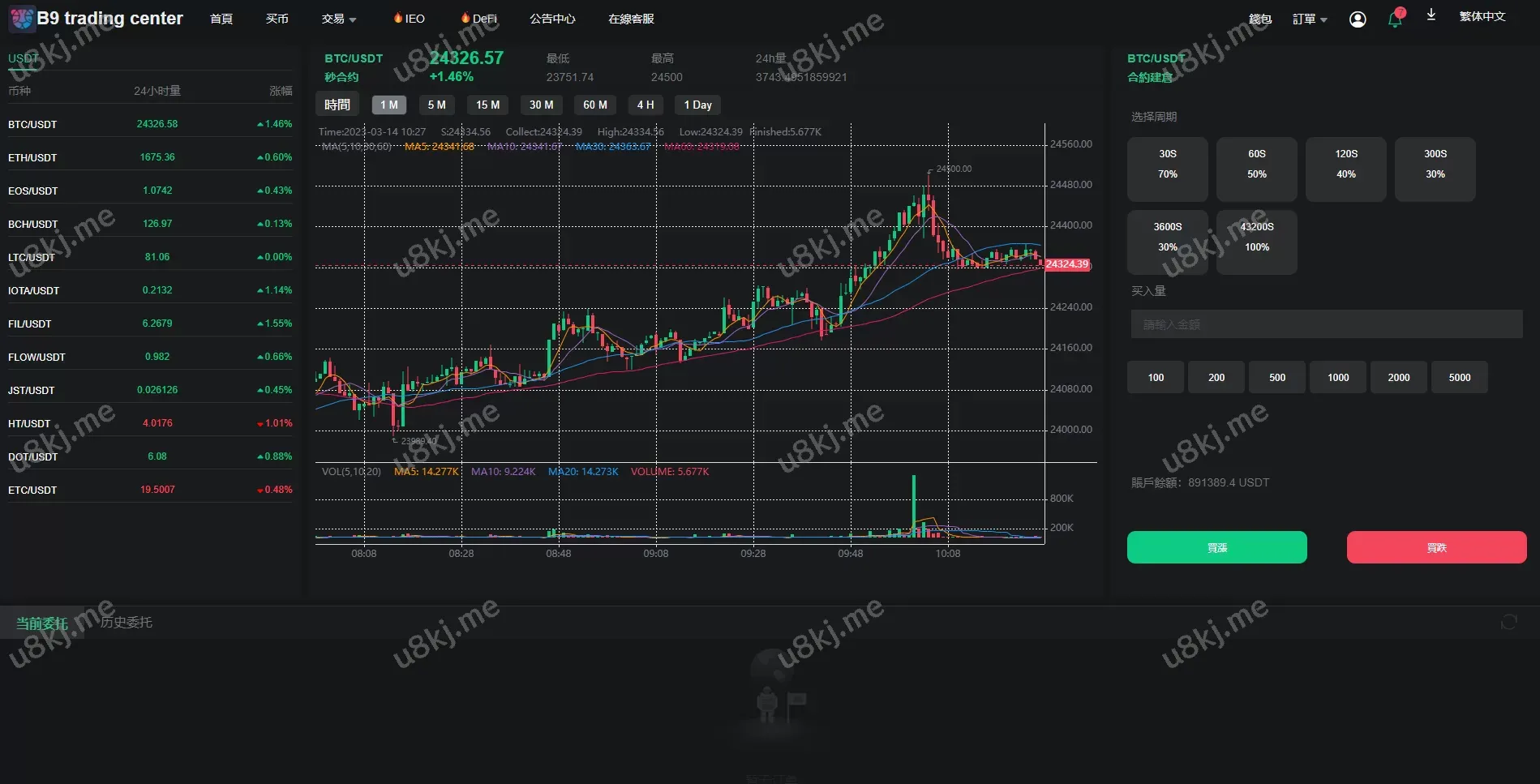 - 功能全面:源码支持 币币交易、秒合约、质押矿机、新币认购等多种功能,覆盖市场主流交易需求。