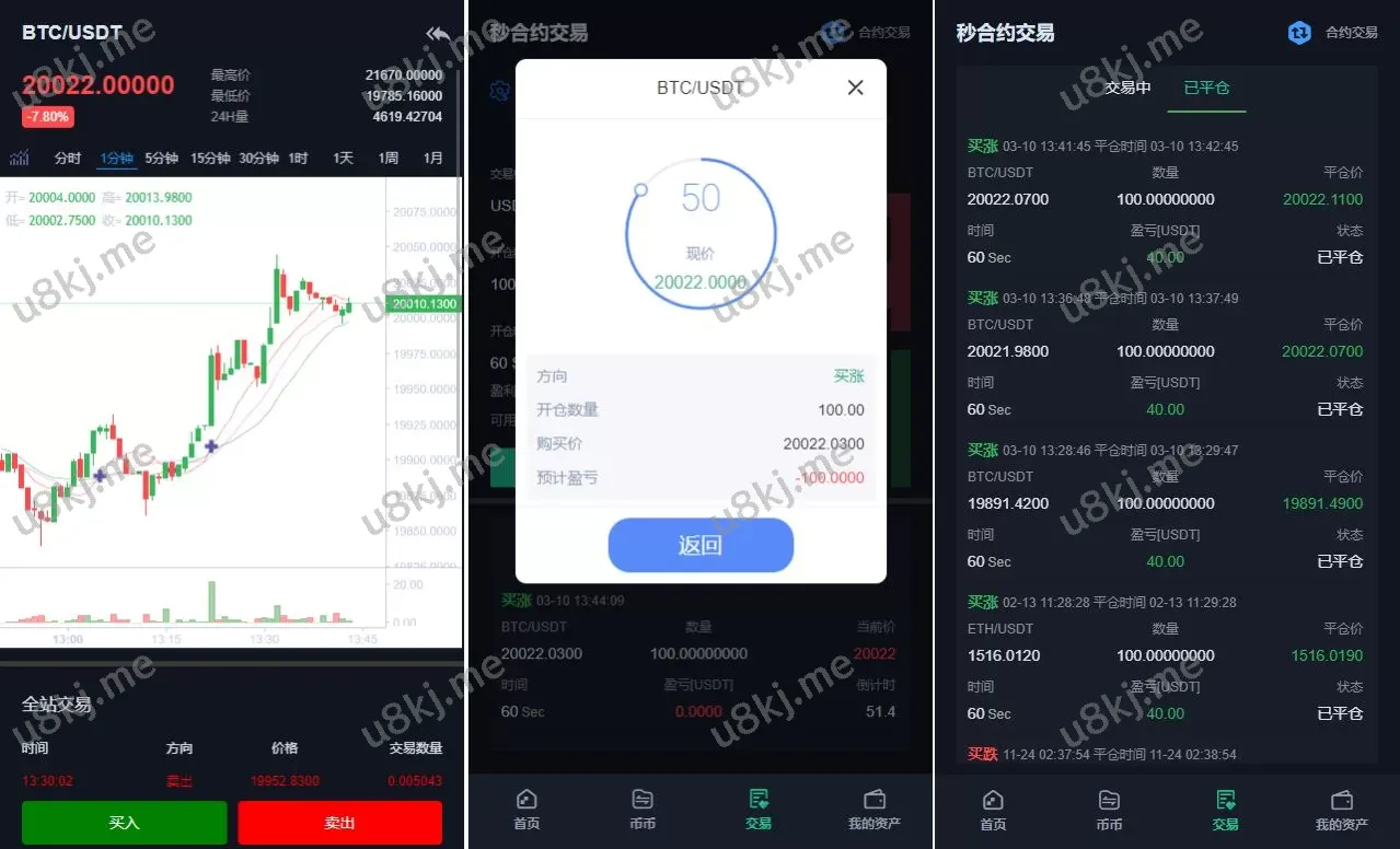 🔹 秒合约交易:提供 秒合约交易 功能,允许用户进行快速的合约交易操作,支持高频交易,提升交易体验。