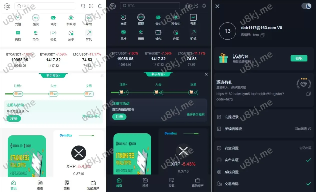- UI精仿KuCoin:前端UI设计参考KuCoin交易所,简洁高效,用户体验优秀。