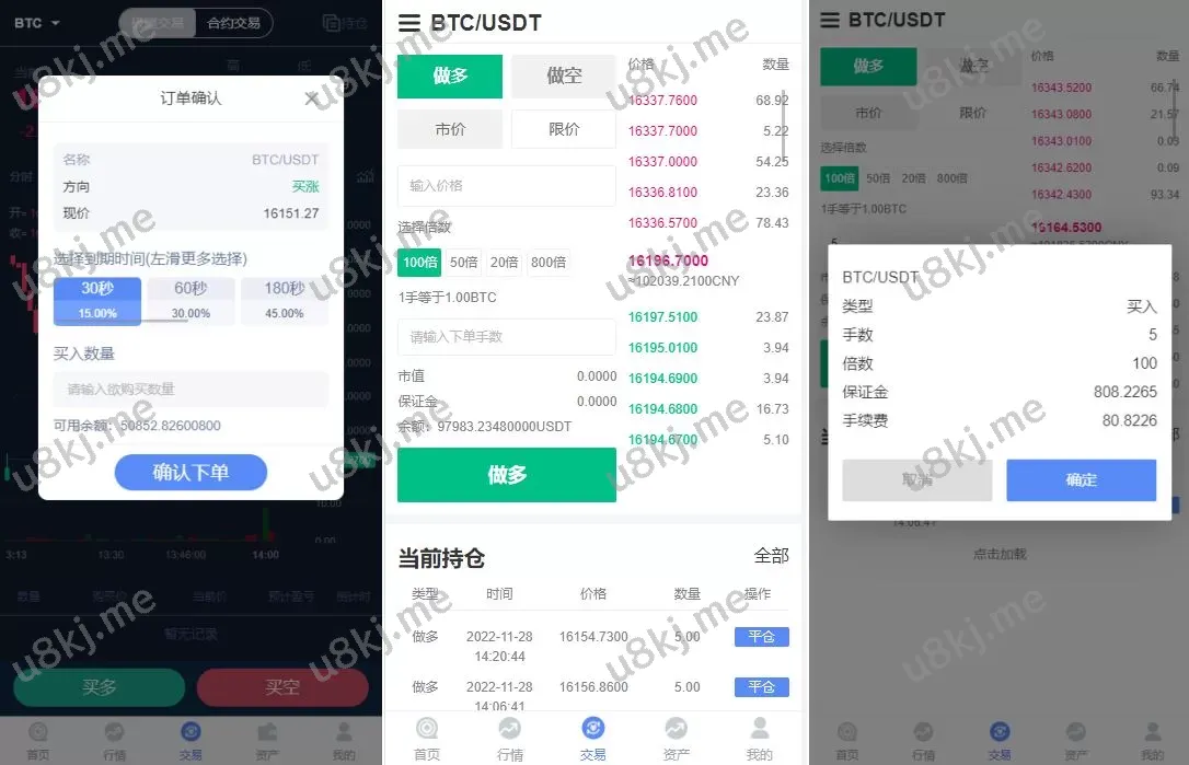 - 交易功能:秒合约交易源码,支持快速下单、平仓、结算等操作。