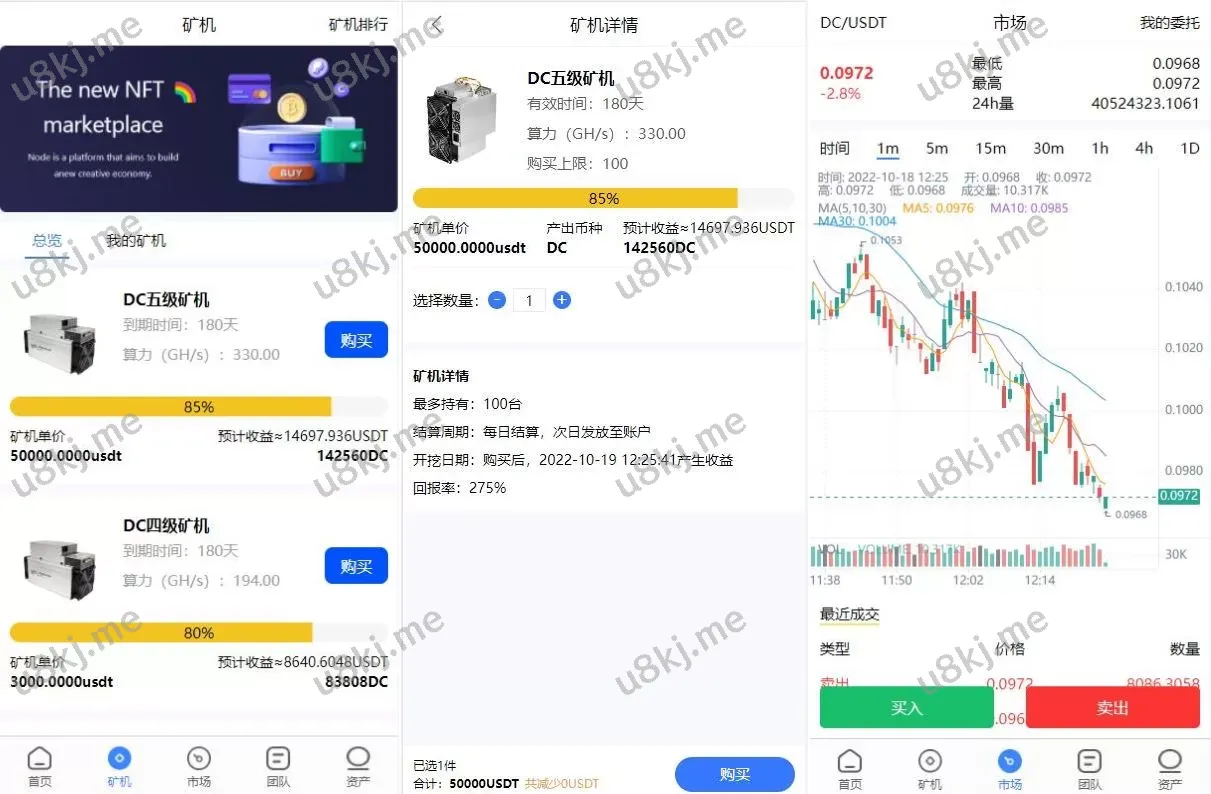 🔹 市场交易与K线:二次开发加入的市场交易功能支持币种买卖,K线图实时更新,类似于交易所功能,帮助用户跟踪市场动态。