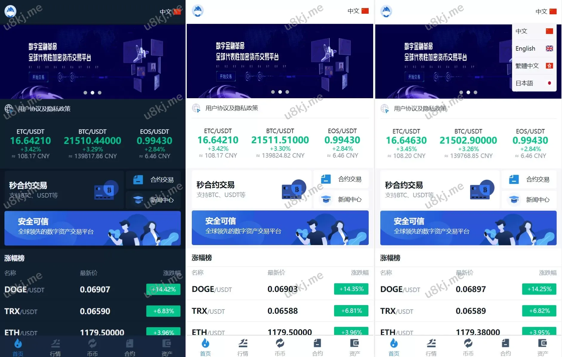多国语言切换交易所源码/币币交易/秒合约交易所/PC端VUE/手机端uniapp源码