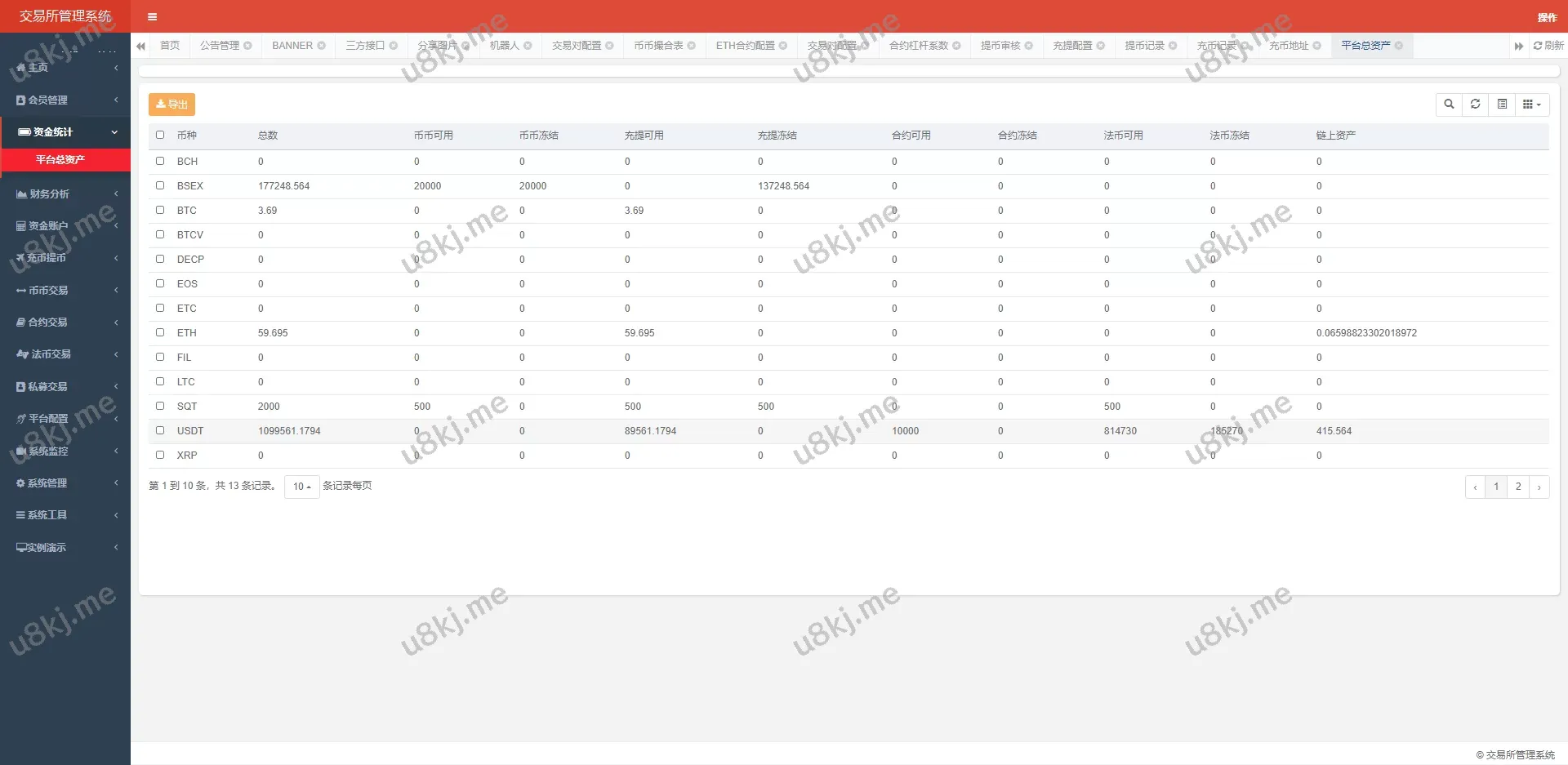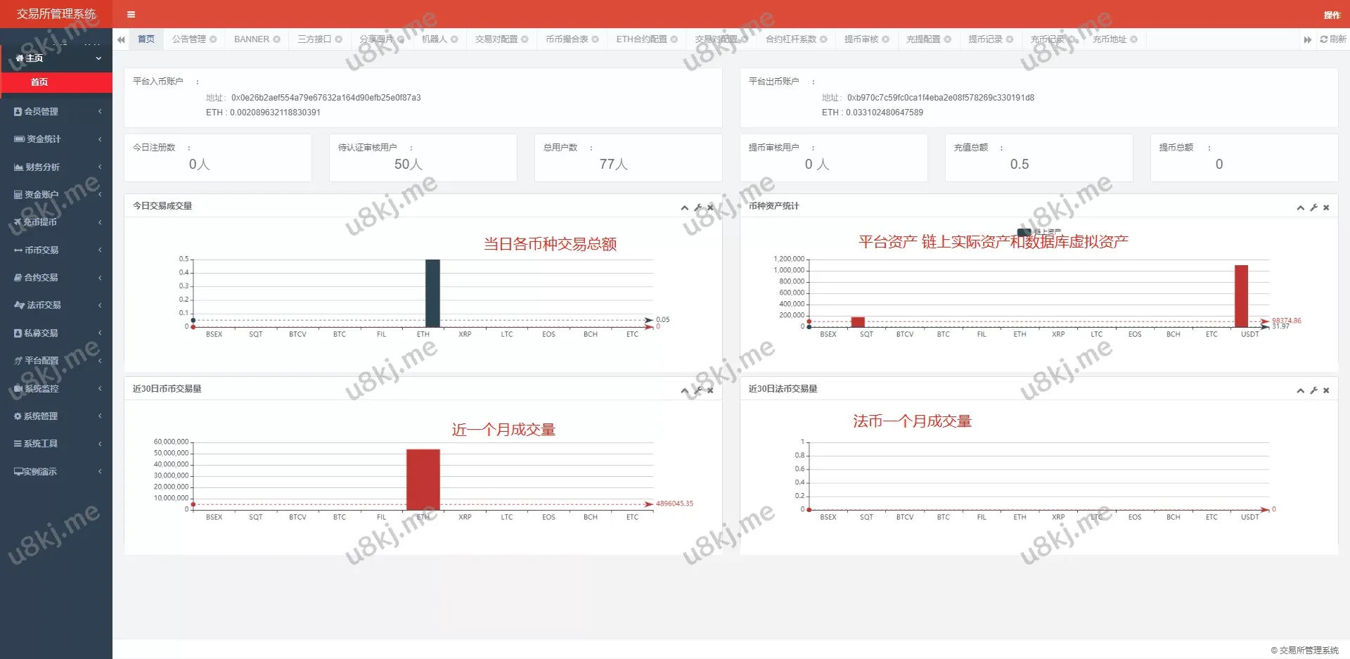 - 源码概况:实时查看币种统计、用户统计、交易统计等数据