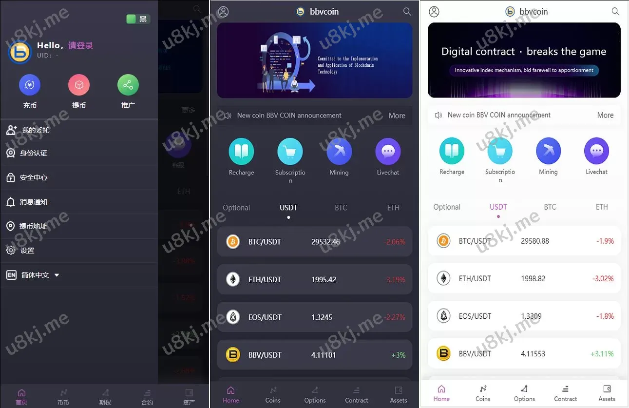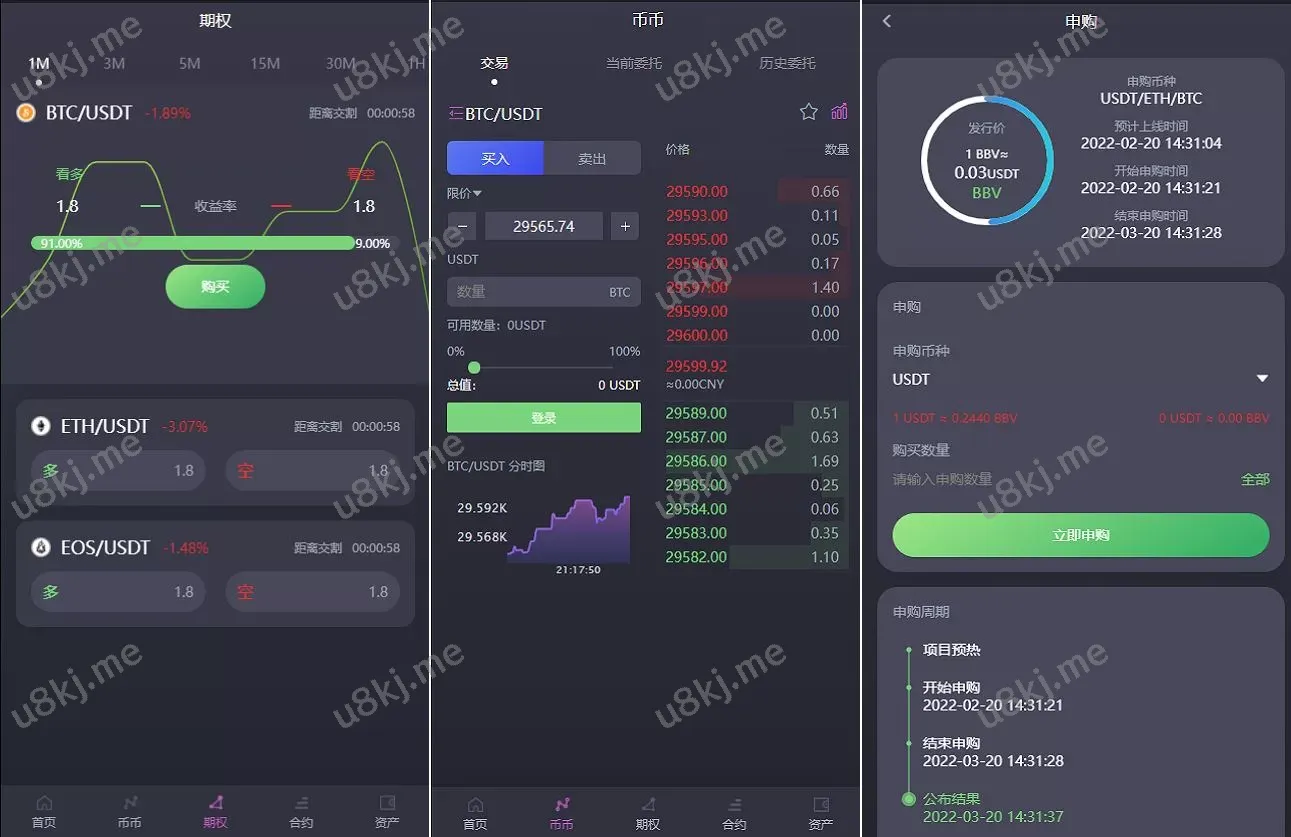 - 高效、实时的秒合约交易,支持杠杆交易
