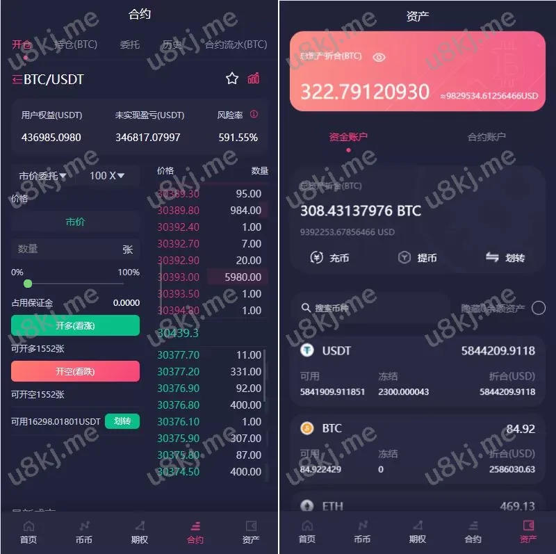 - 合约交易:支持杠杆交易、秒合约、永续合约