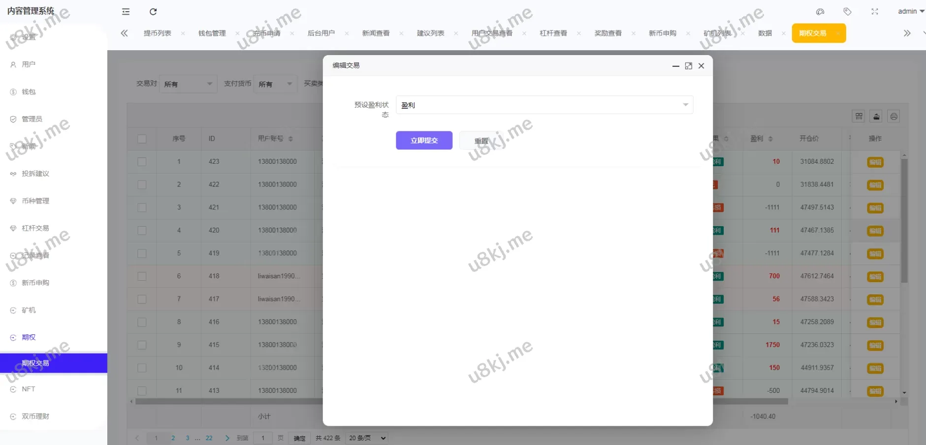5️⃣ 交易所功能:合约交易、秒合约、杠杆交易、C2C交易、API对接
