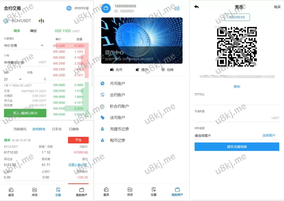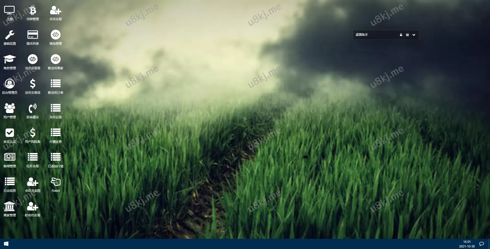 - 平台概况:实时行情、高端K线、合约交易、BI数据分析、币种统计、用户统计、交易统计、异常用户监控