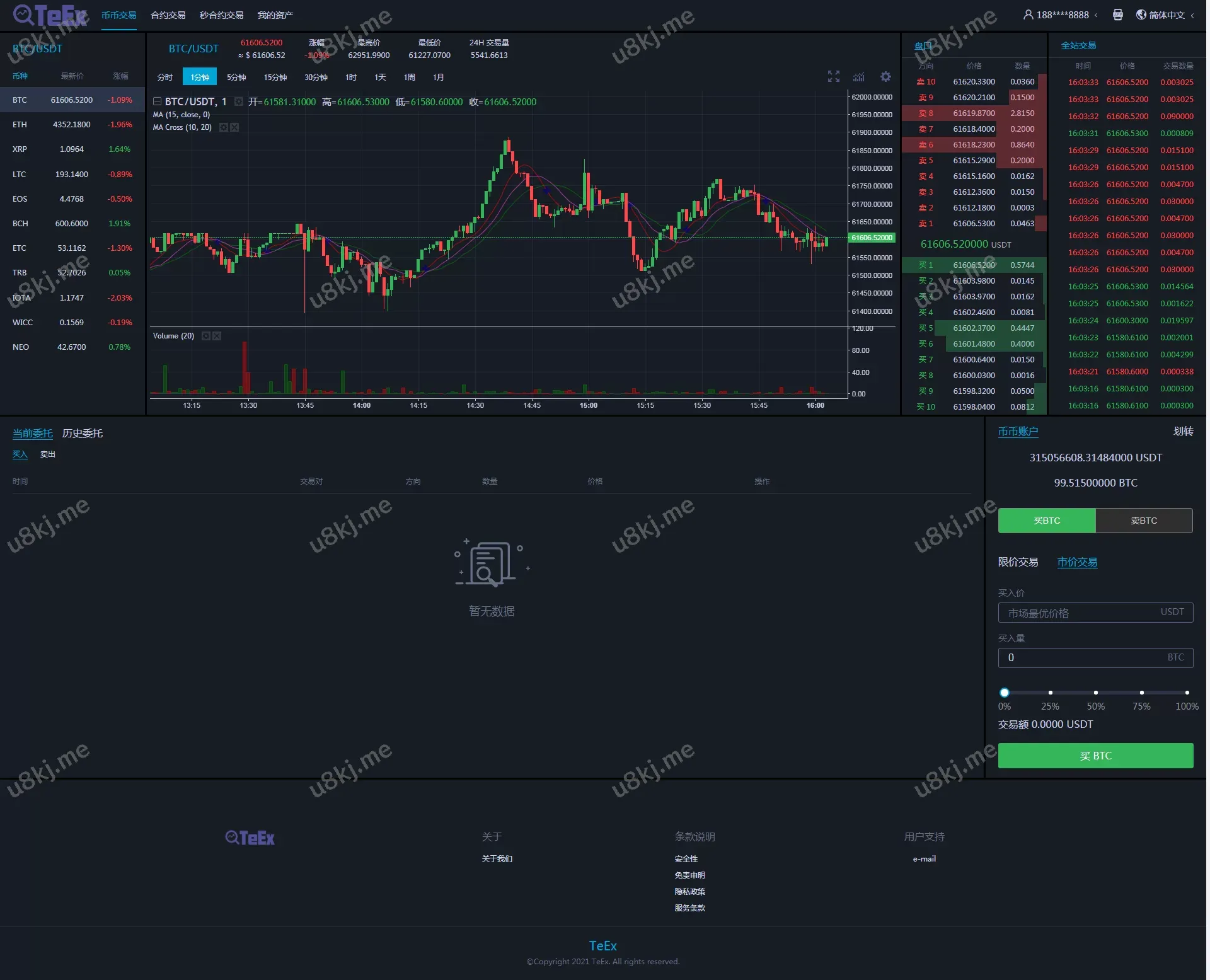 TeEx多国语言切换交易所源码/USD₮秒合约/C2C法币交易/杠杆交易/VUE前端全开源