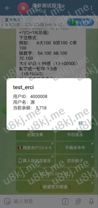 - TG机器人下注交互:实时识别指令下注,支持单双、大小、豹子等玩法